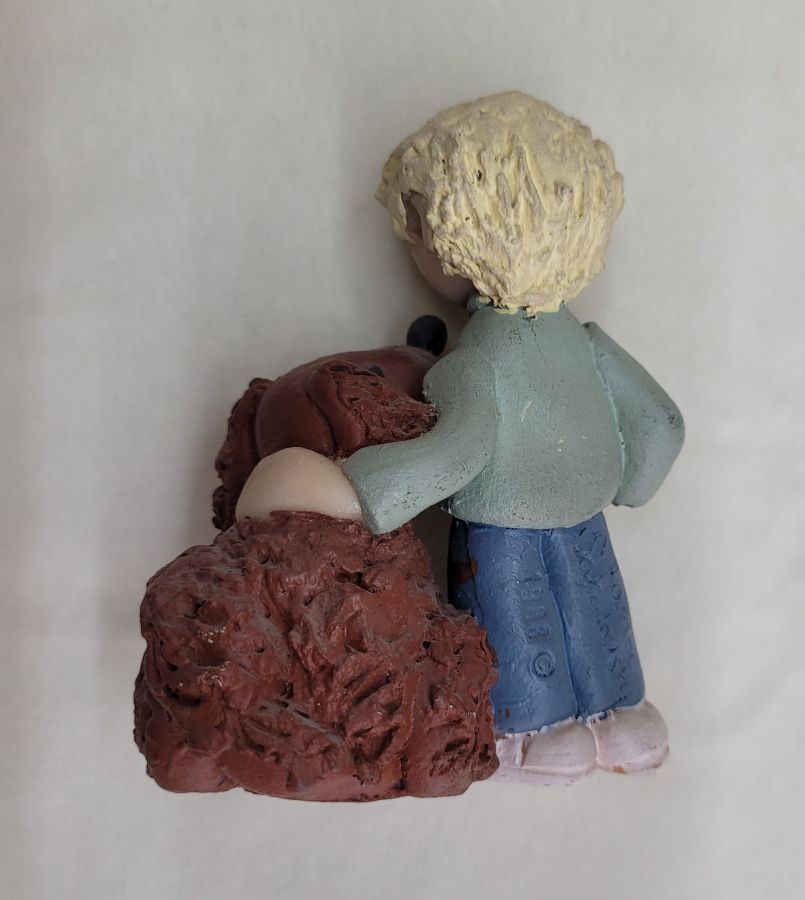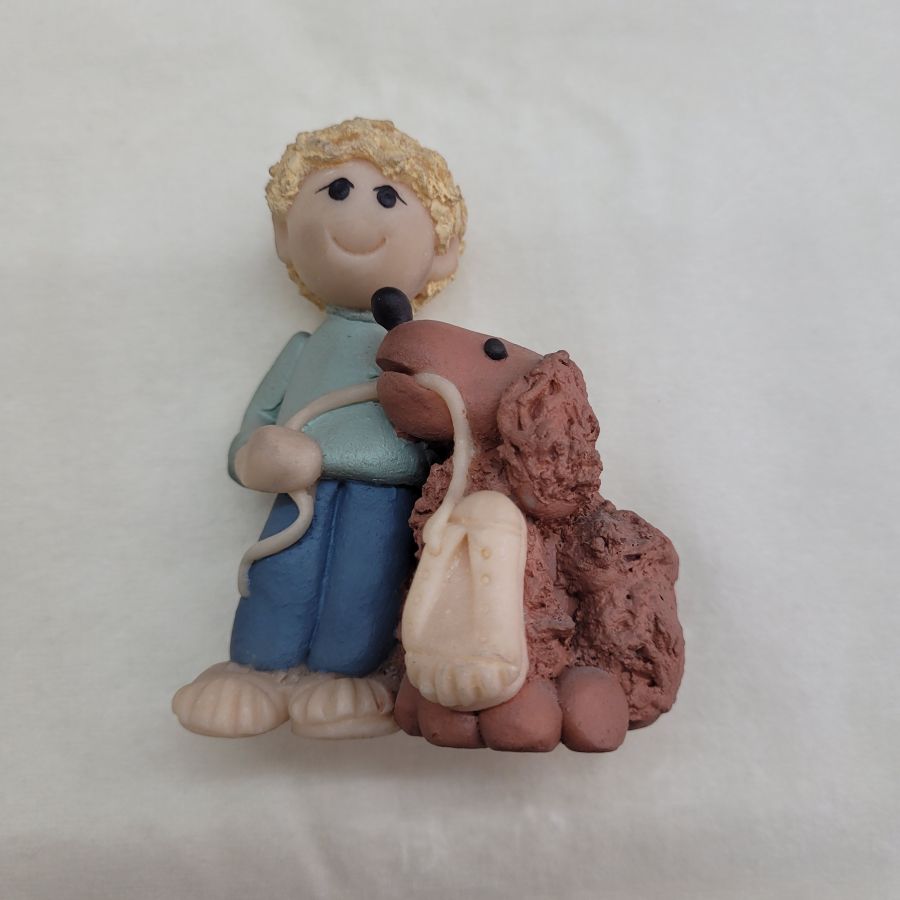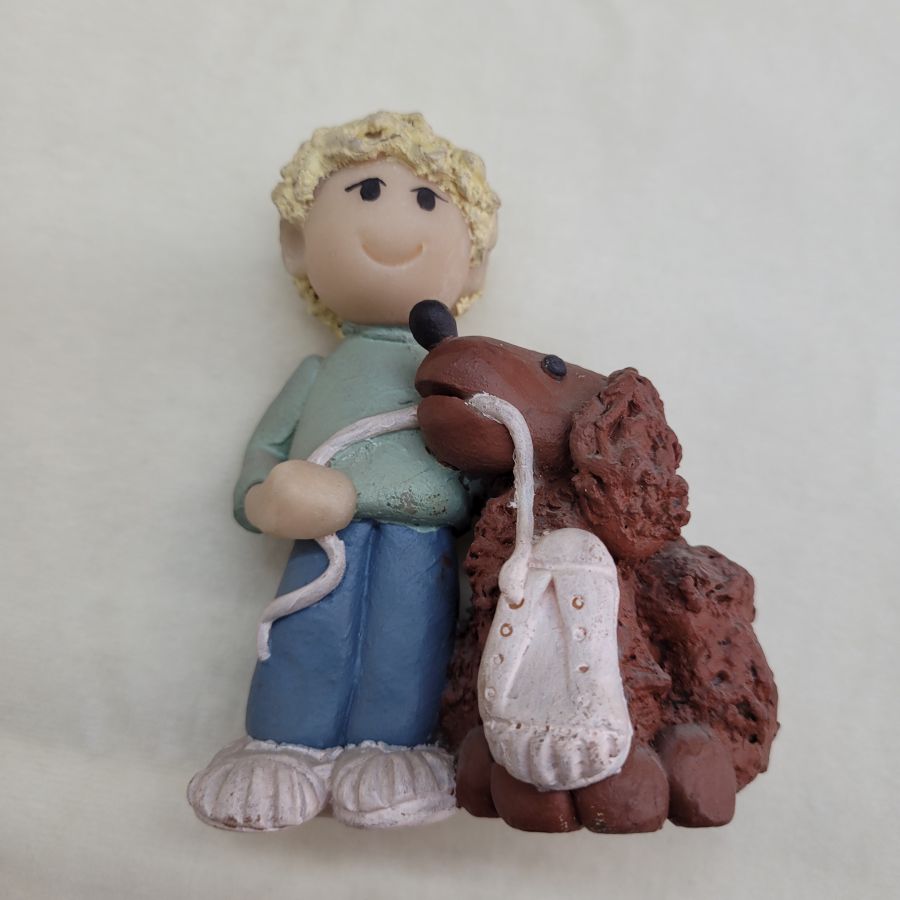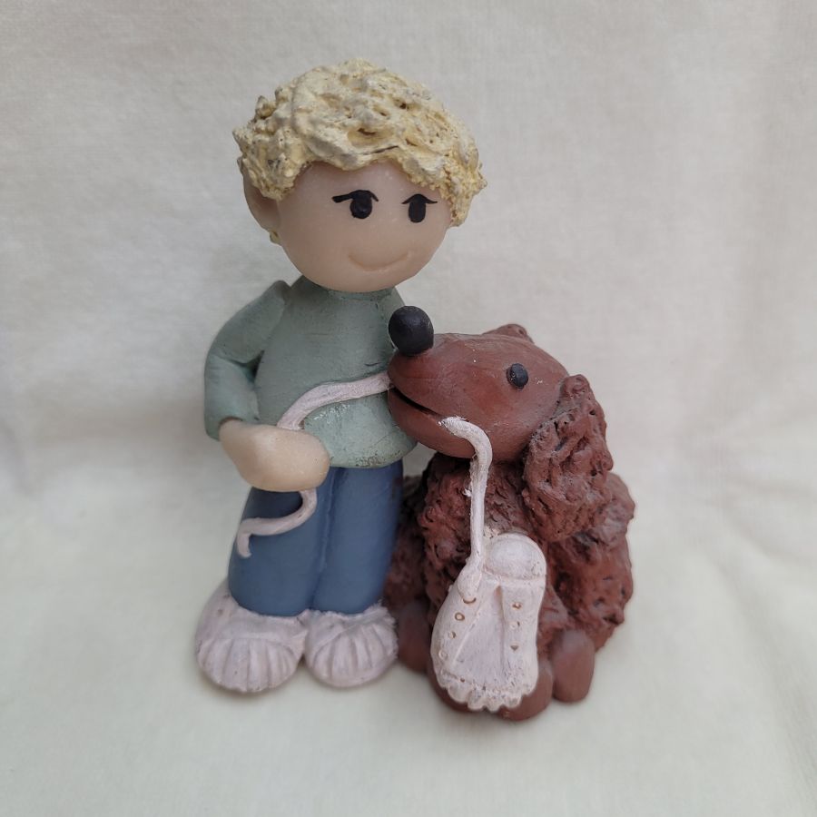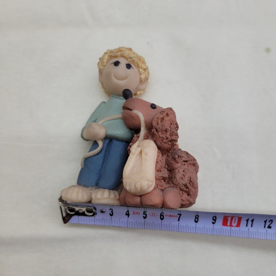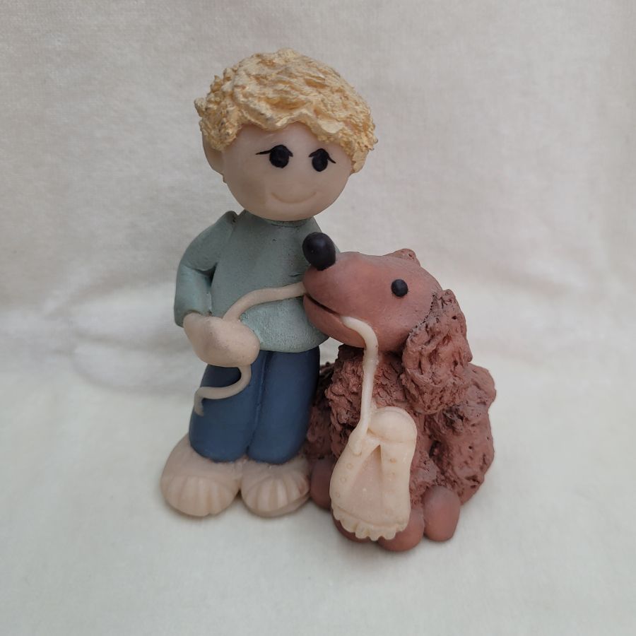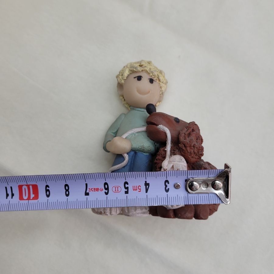 Ceramic sculpture poodle dog and boy handmade. Handmade ceramic sculpture poodle dog and boy made in 1980’s by Sakolovsky . There are more various characters in stock of Sakolovsky creations. creations. Dimension 9.5 cm X 4.5 cm X 7 cm approximately.