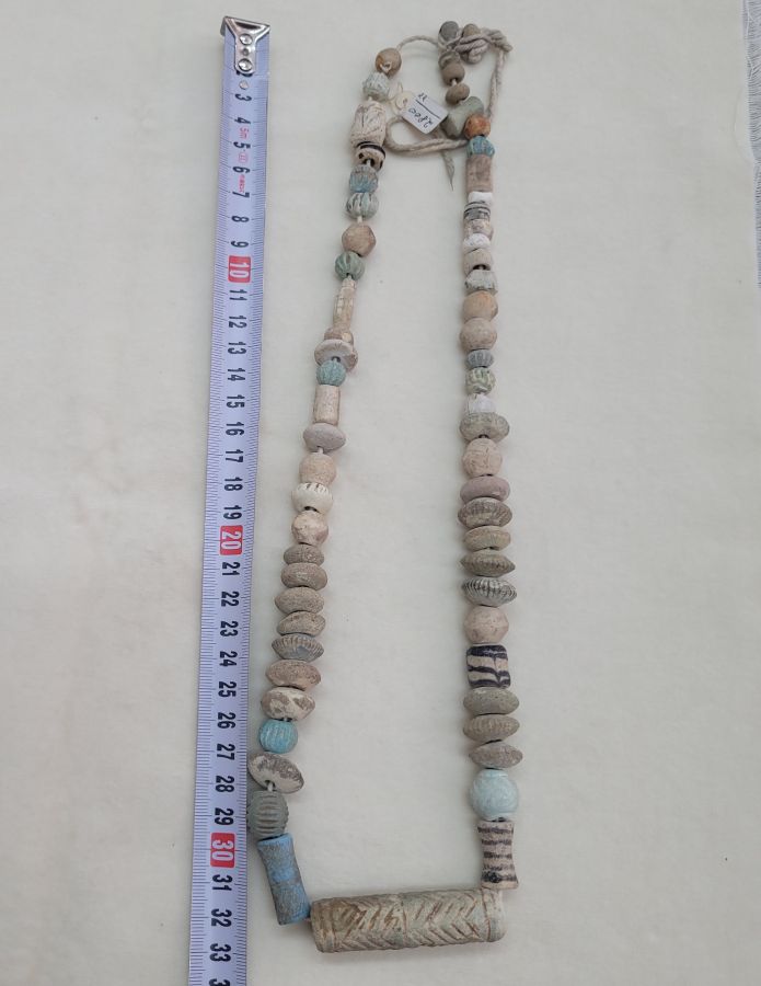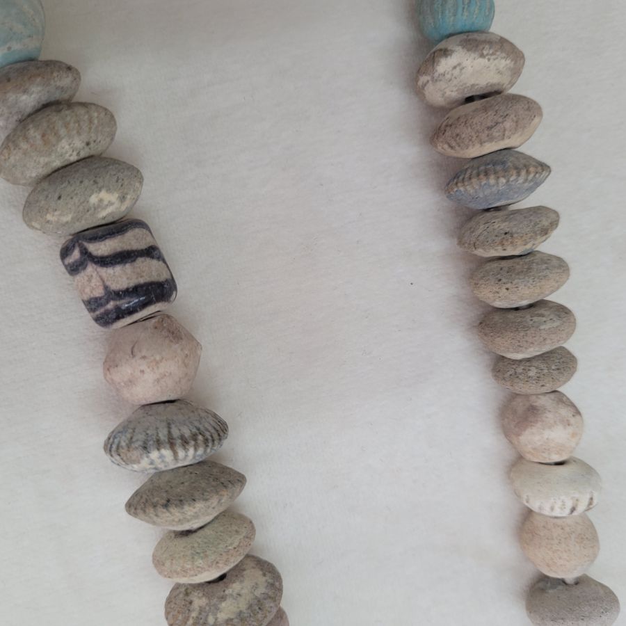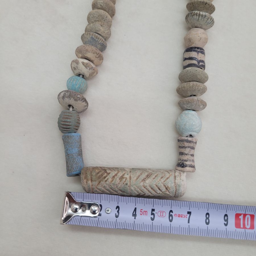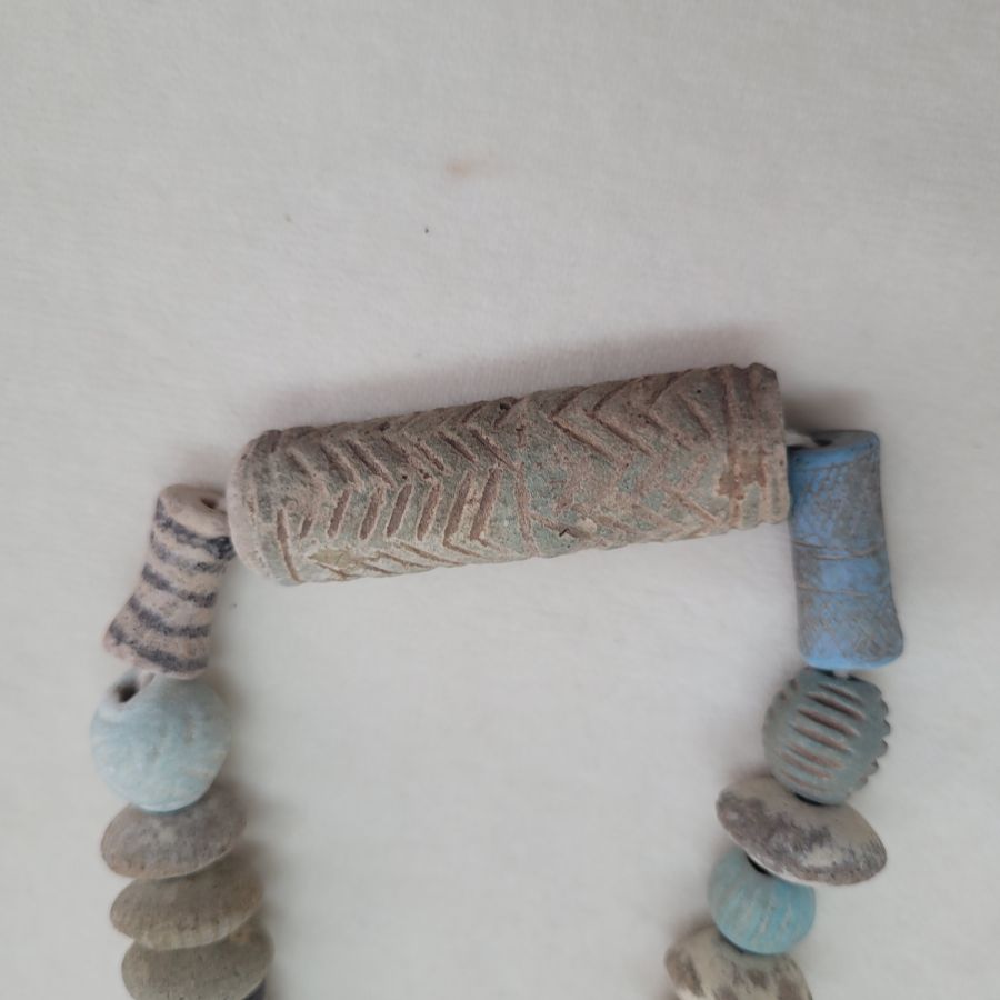 Genuine antique clay beads necklace  found in Israel 8th century BC.  Hand made genuine antique clay beads necklace with different designs of clay colored beads.
