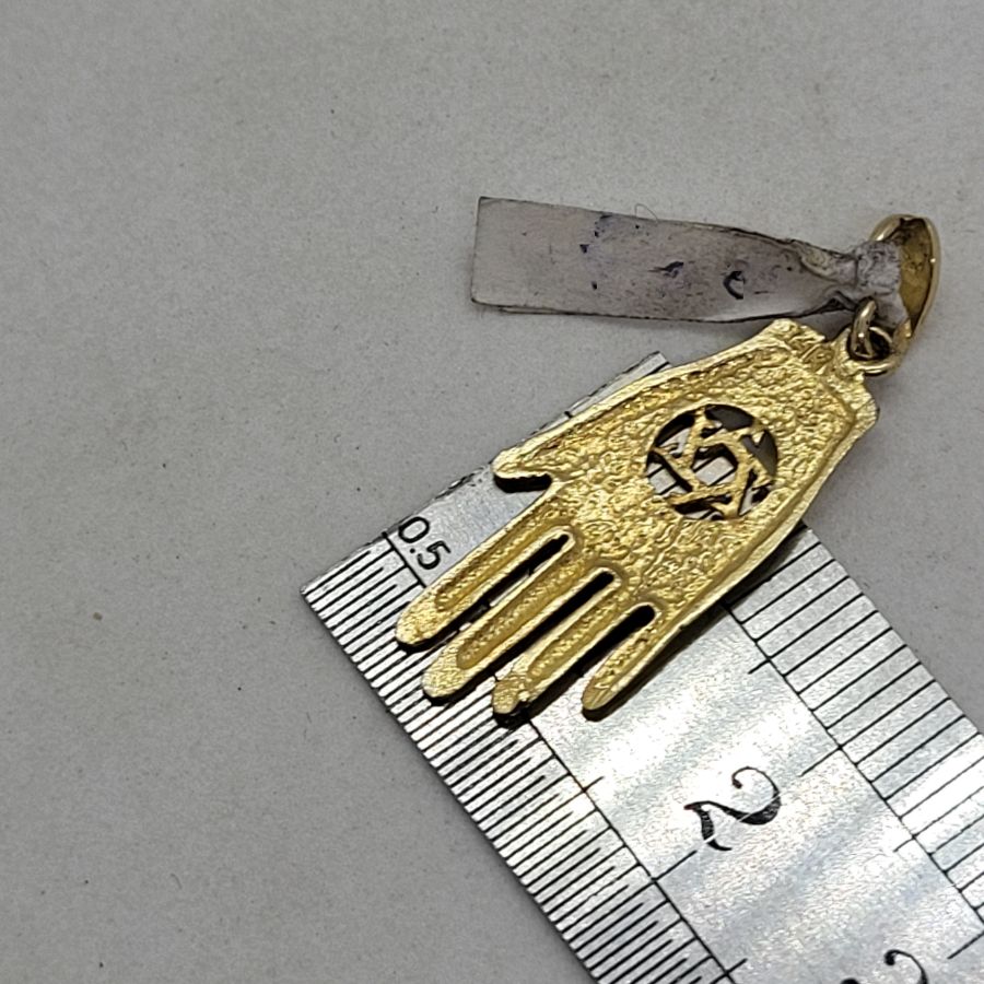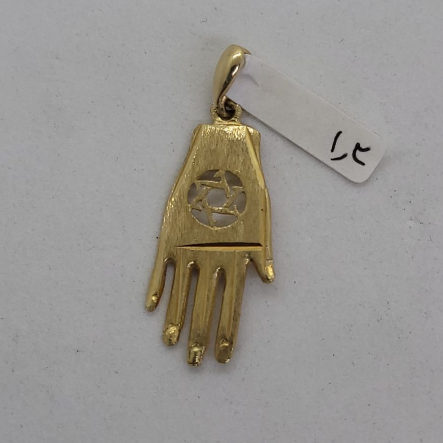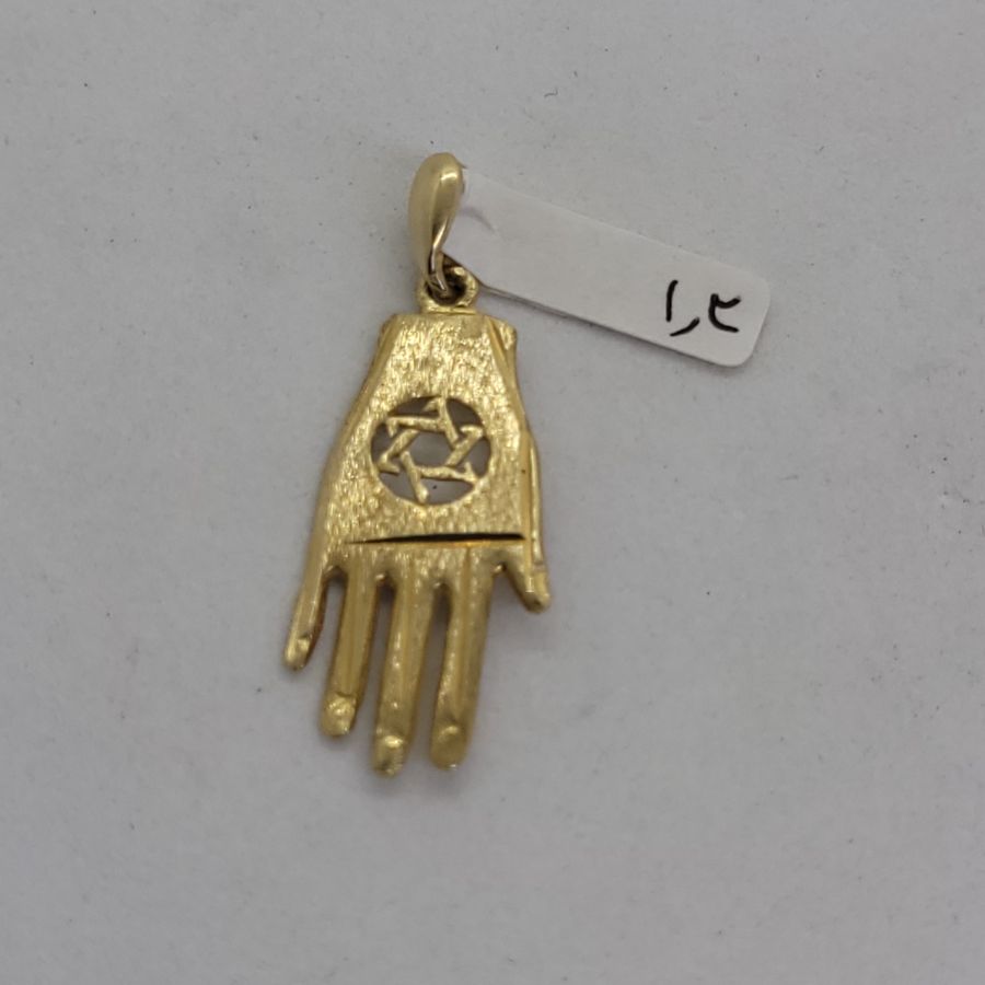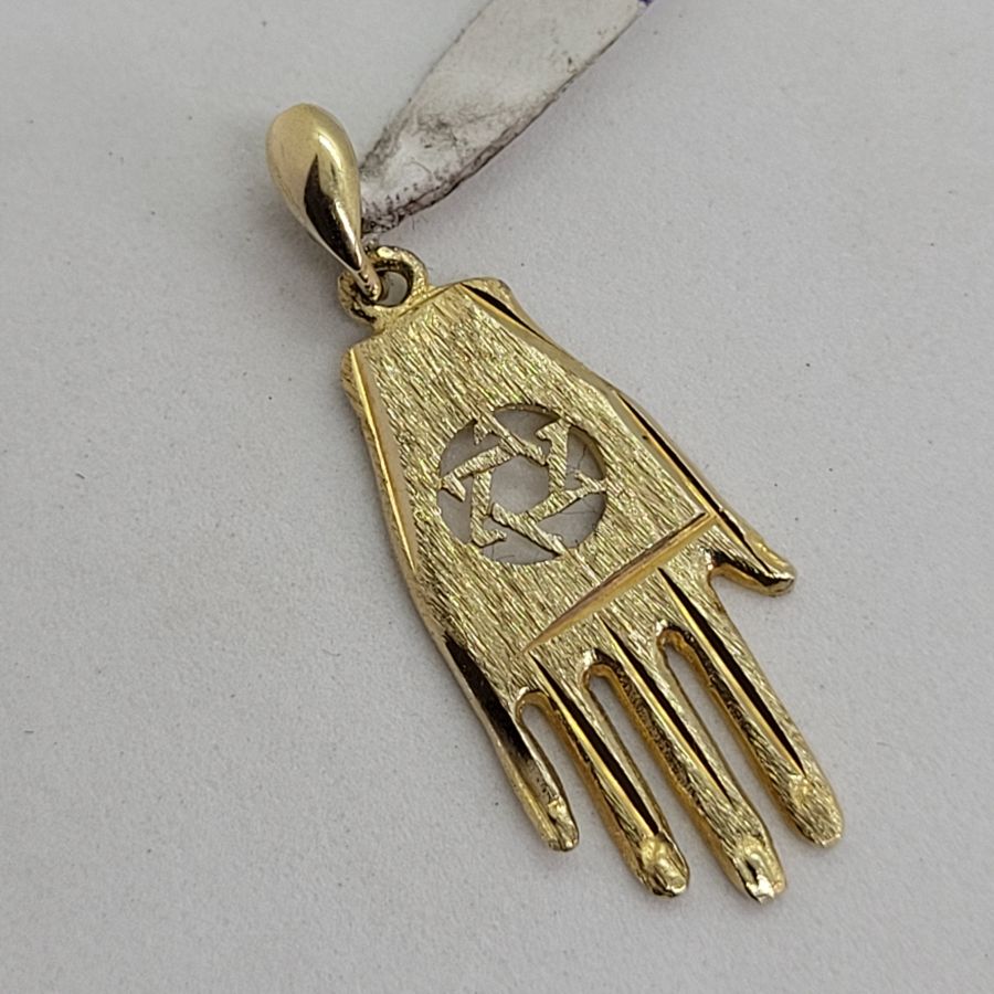 14 Carat gold Hamsa Chamsa MagenDavid cut out handmade. Handmade 14 carat gold Hamsa Chamsa MagenDavid cut out pendant with cut out star of David cut in circle.