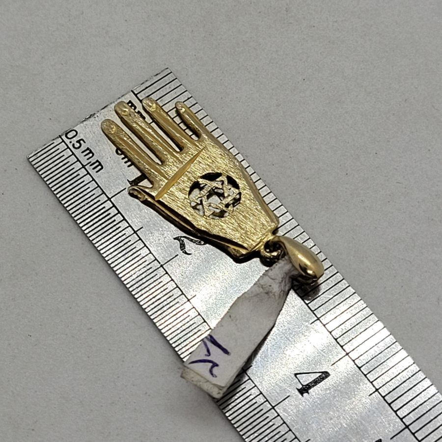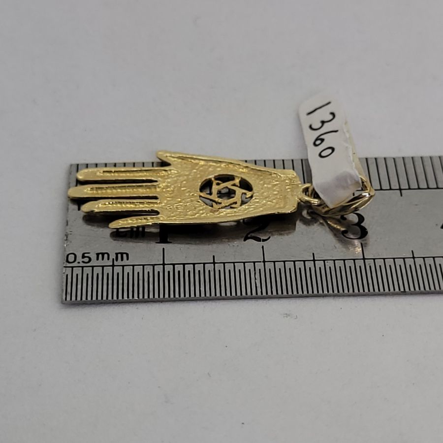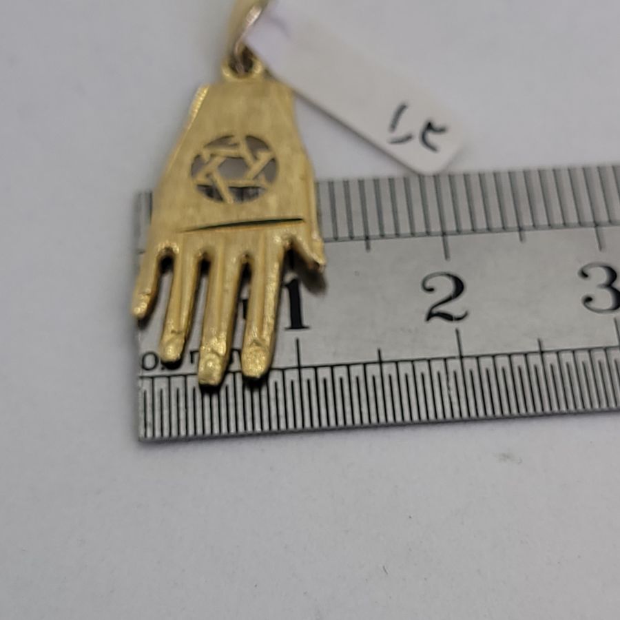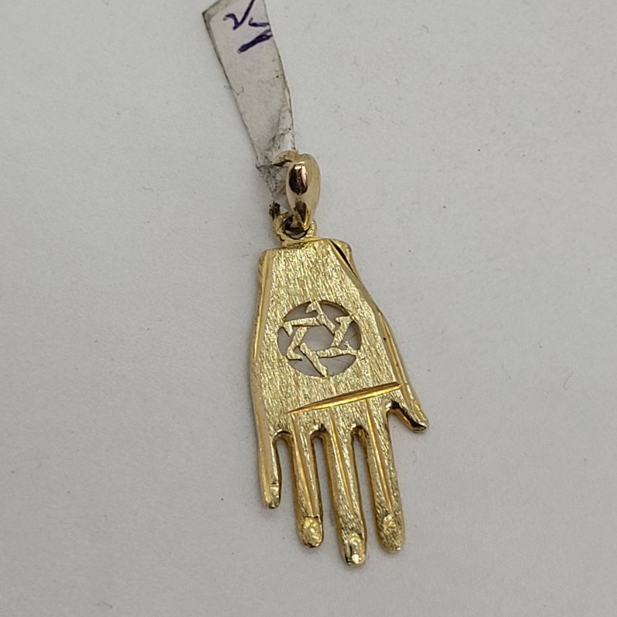 14 Carat gold Hamsa Chamsa MagenDavid cut out handmade. Handmade 14 carat gold Hamsa Chamsa MagenDavid cut out pendant with cut out star of David cut in circle.