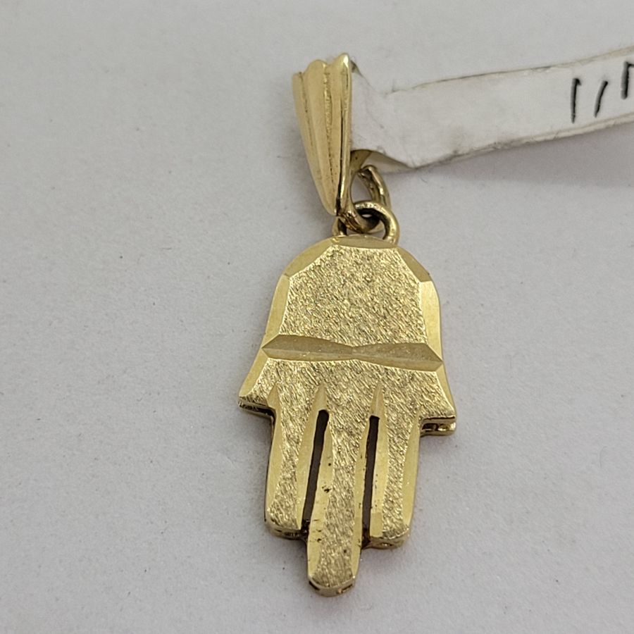14 Carat gold Hamsa Chamsa pendant Yellow gold small handmade. Handmade 14 carat Yellow gold Hamsa Chamsa pendant white gold small size with fine Florentine brush.