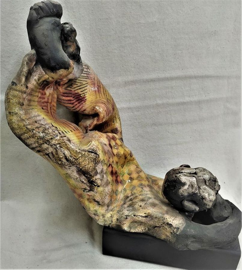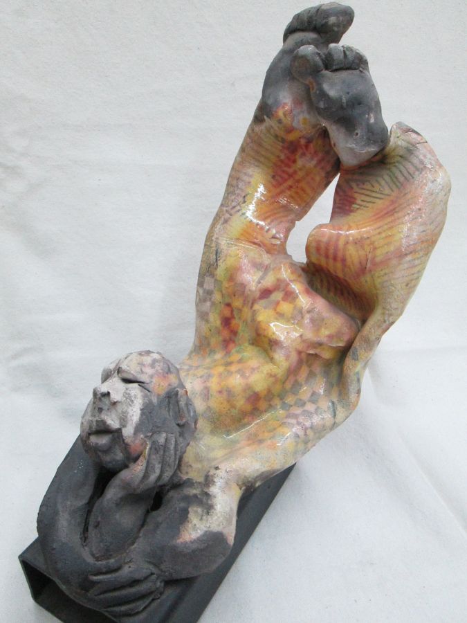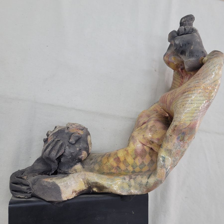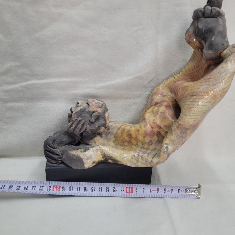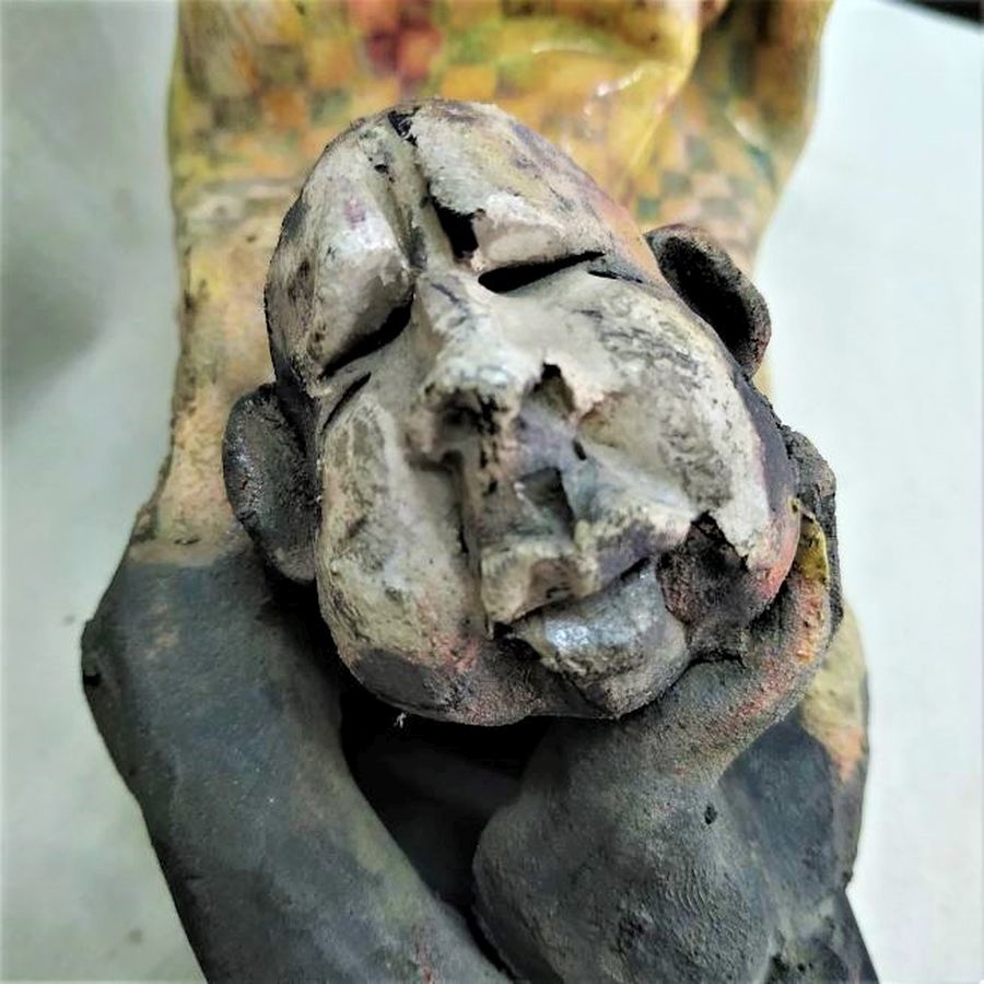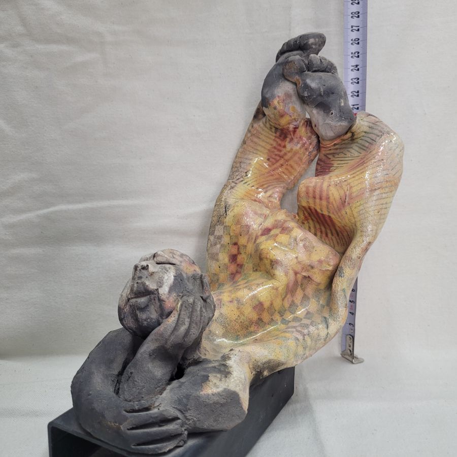Clown glazed ceramic sculpture handmade . S. Factor has made this beautiful glazed ceramic sculpture in Roku ceramic a shabby clown resting & enjoying the sun.