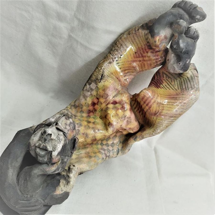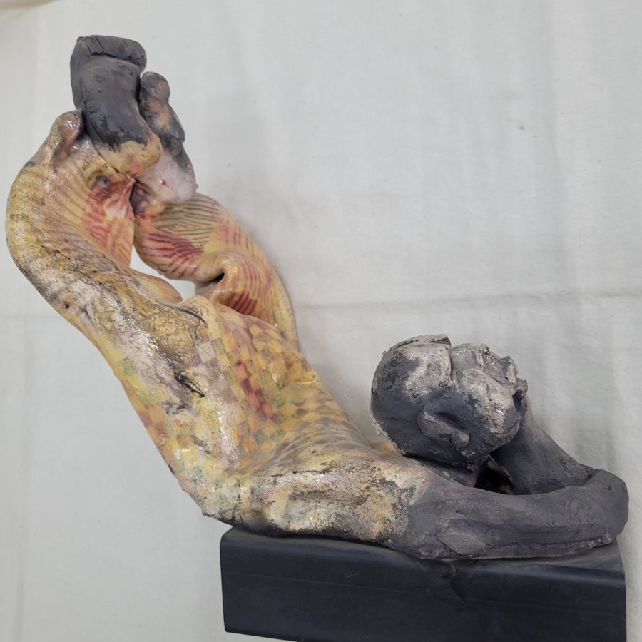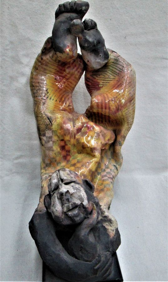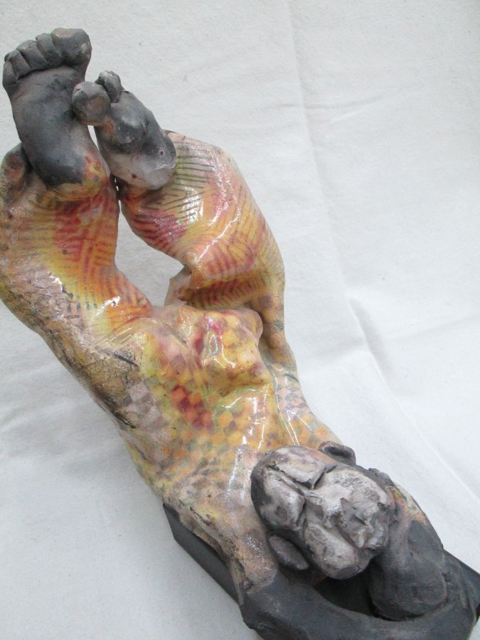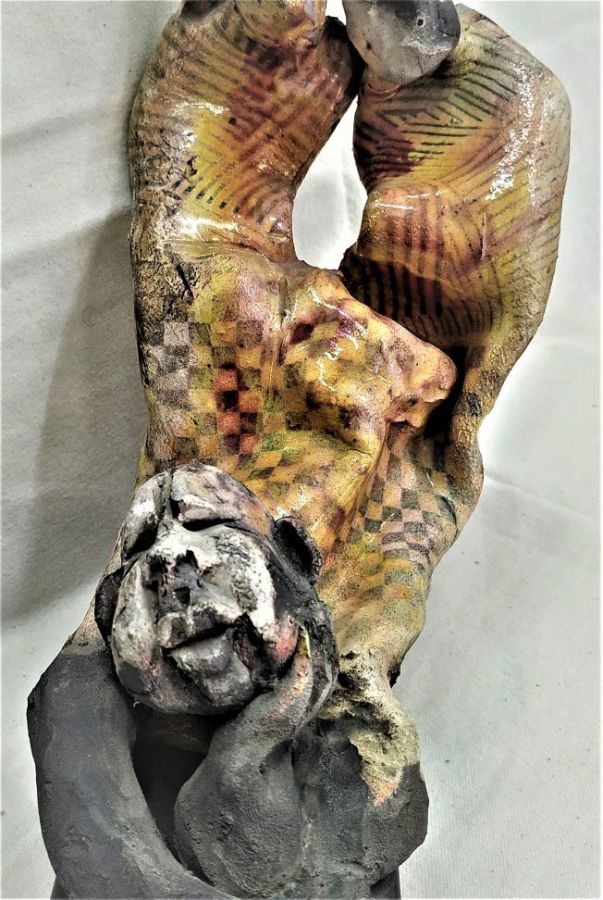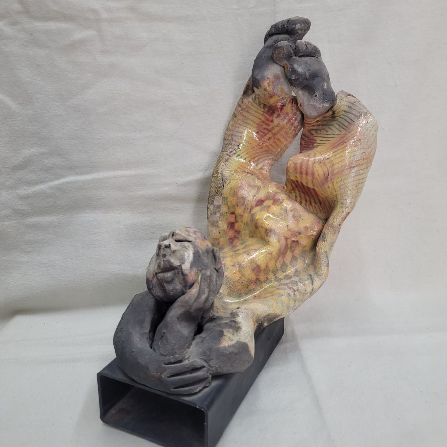 Clown glazed ceramic sculpture handmade . S. Factor has made this beautiful glazed ceramic sculpture in Roku ceramic a shabby clown resting & enjoying the sun.
