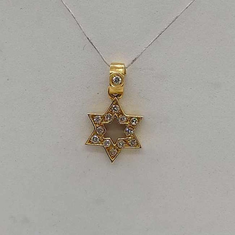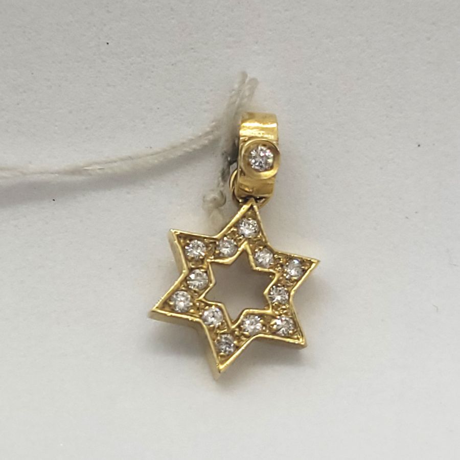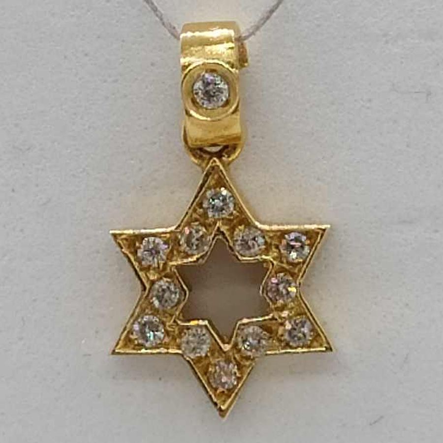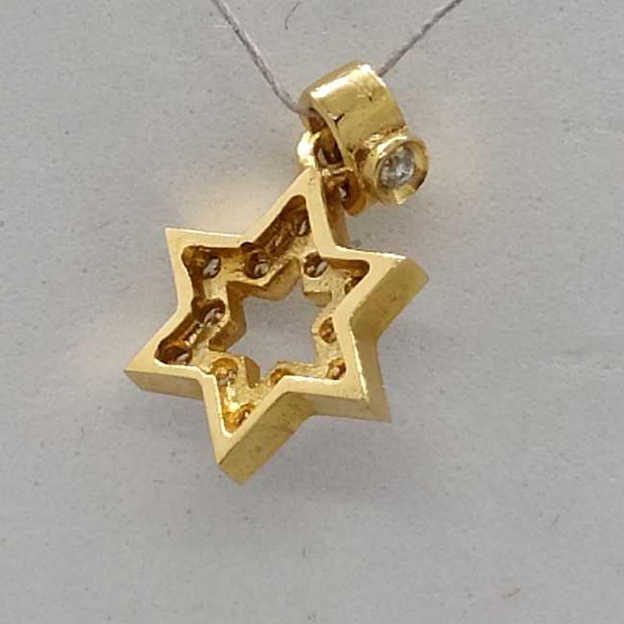 18 Carat Gold Magen David Star 13 Diamonds Pendant handmade. 18 Carat yellow gold star of David set with 13 genuine white diamonds total weight 11 pts, VVS clarity.