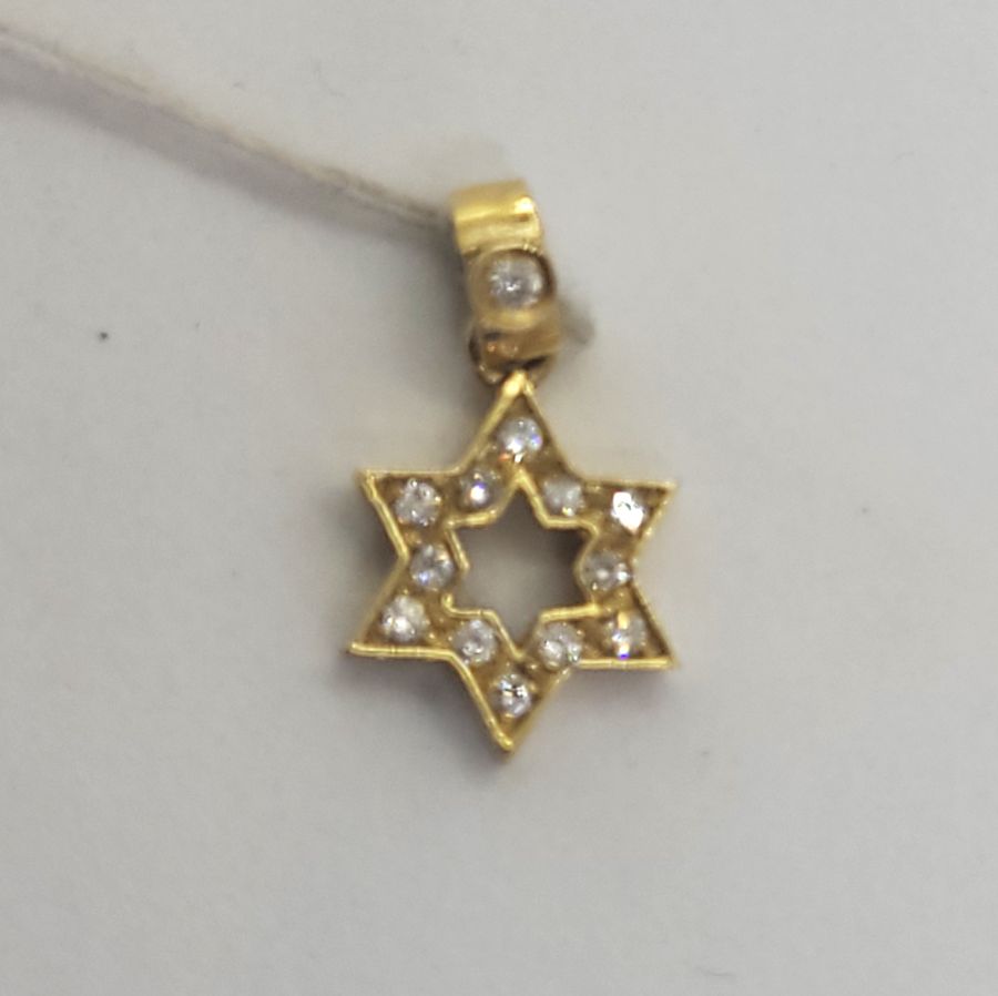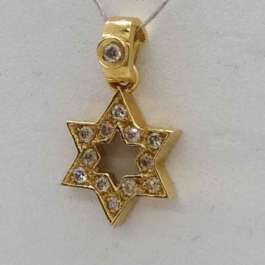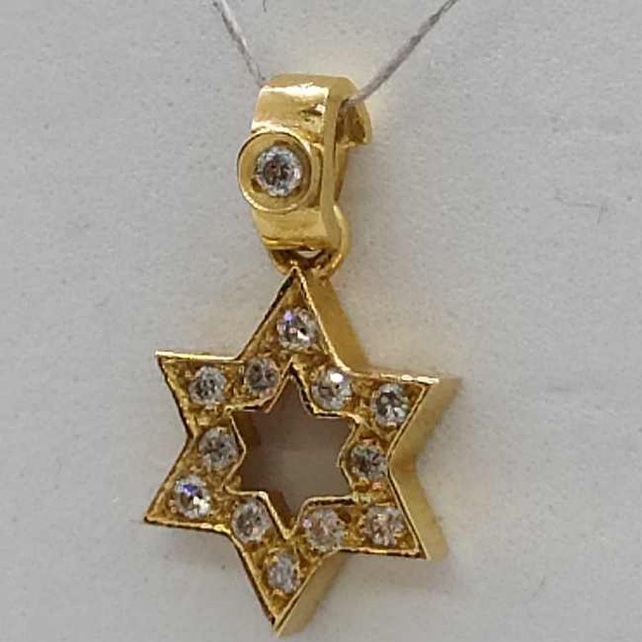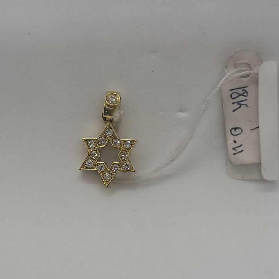 18 Carat Gold Magen David Star 13 Diamonds Pendant handmade. 18 Carat yellow gold star of David set with 13 genuine white diamonds total weight 11 pts, VVS clarity.