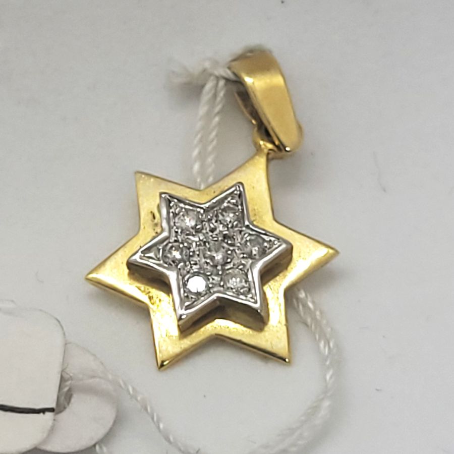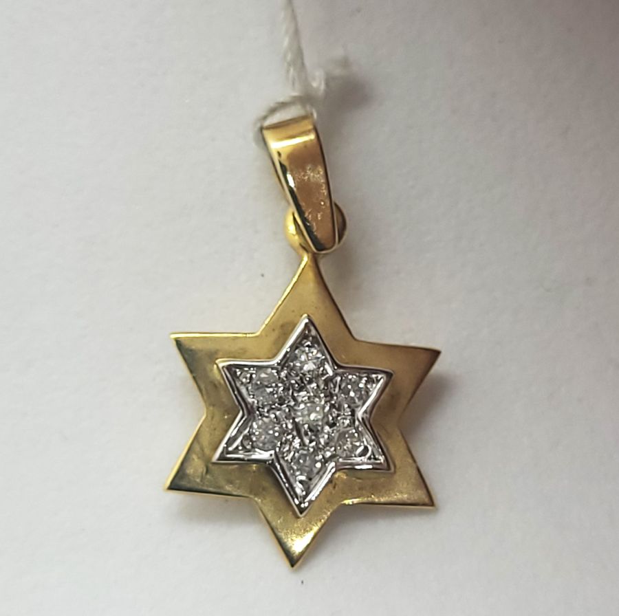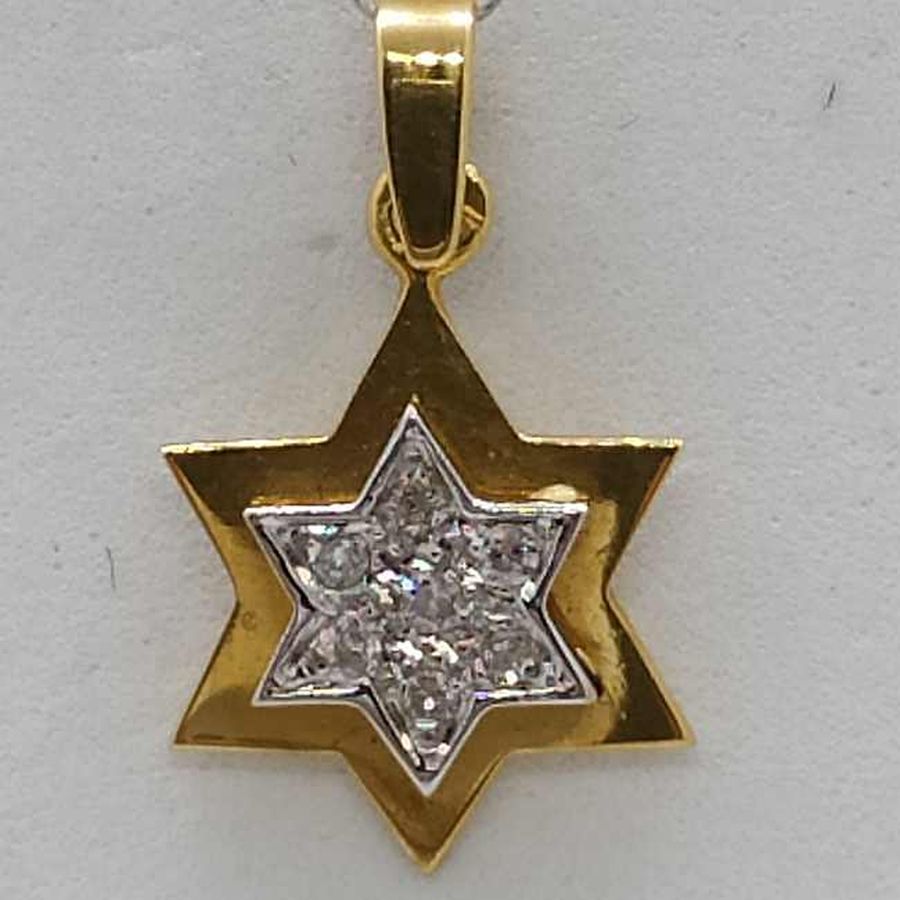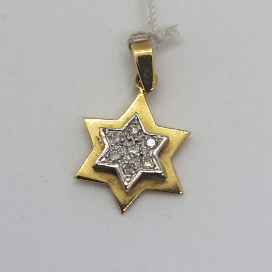 18 Carat gold Magen David star 7 Diamonds pendant handmade. 18 carat white & yellow gold Magen David star 7 Diamonds set with 7 genuine white diamonds 4 pts, VVS clarity white color.