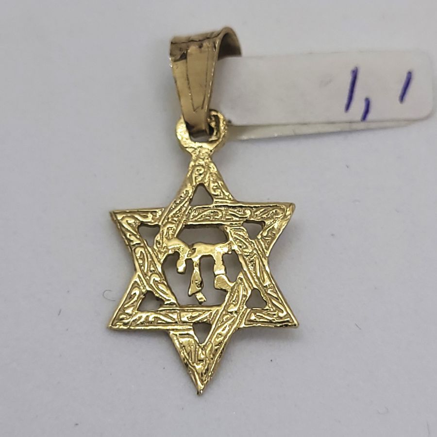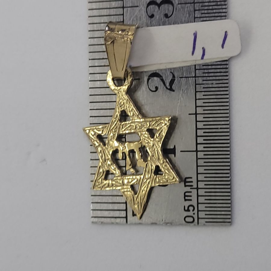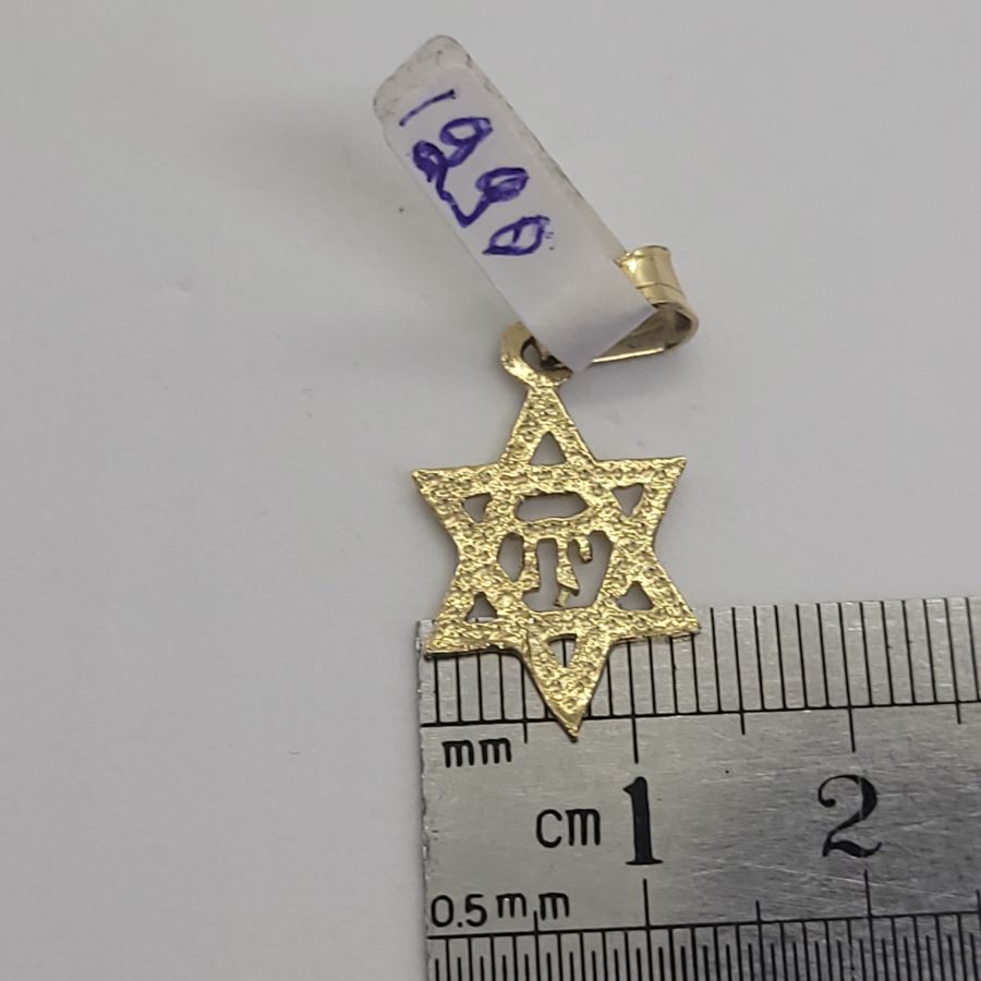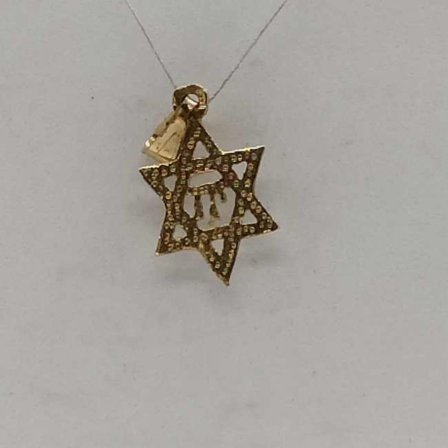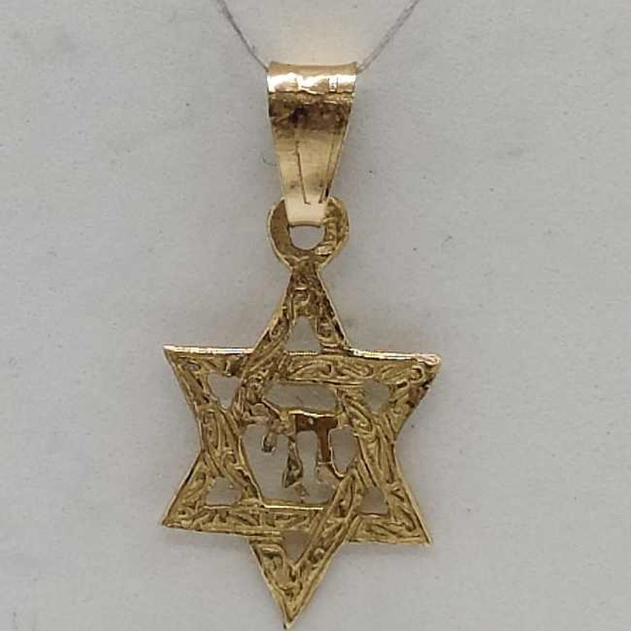 14 Carat gold Magen David star Hay foliage engravings around star frame. Handmade 14 carat gold David Star Hay foliage designs on star.