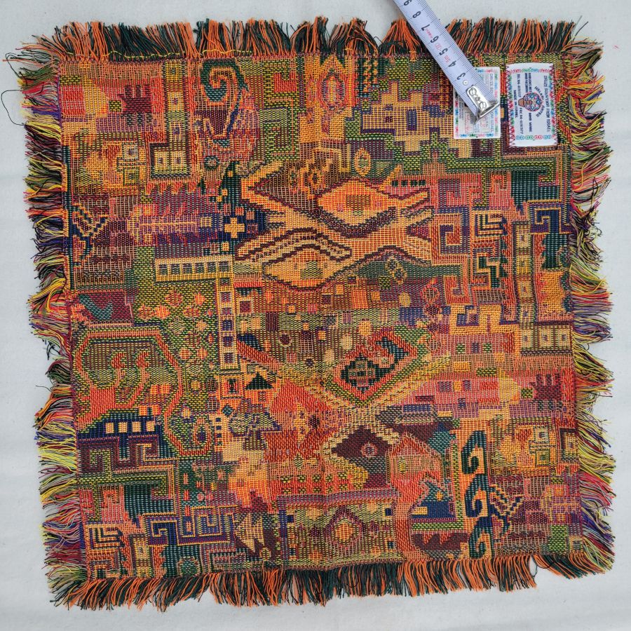 Druze placemat yellow fish pattern handmade 100% cotton square shape. Handmade Druze placemat yellow fish square shape, where each side is as beautiful because of the different shades of yellow colors they have skillfully used. The Druze weaving has passed in Druze society for generation, and has been affected by the surrounding with meager affects for the best results.