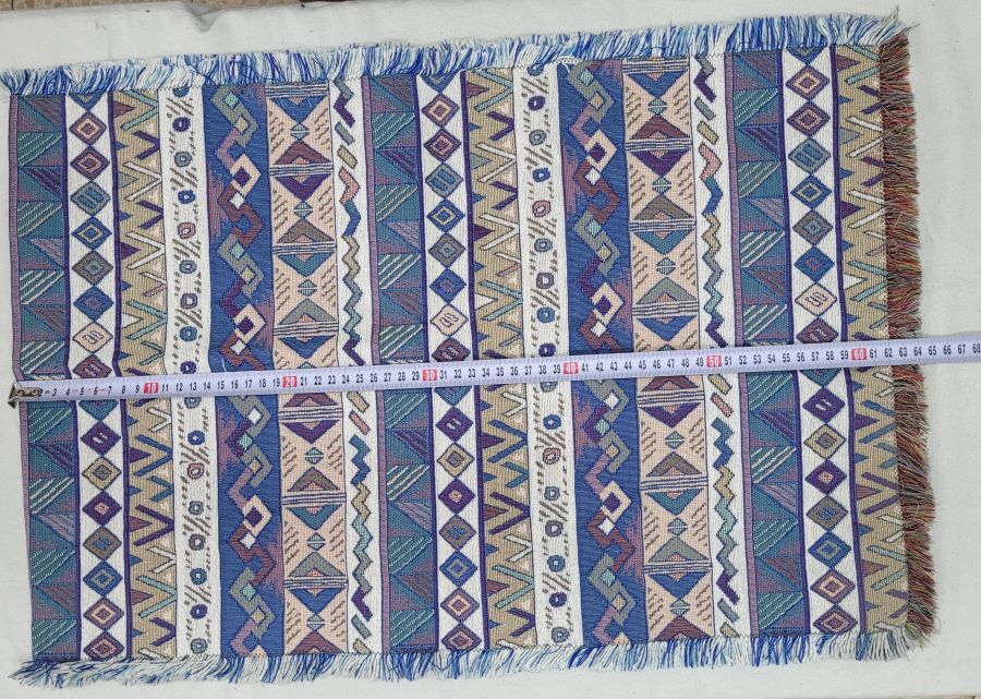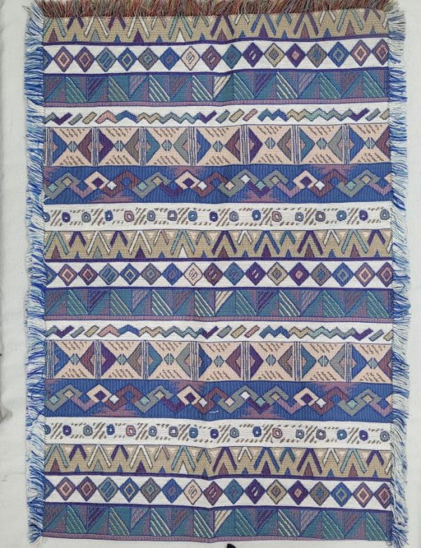 Druze runner rectangle geometric designs handmade cotton. Handmade Druze runner rectangle geometric designs, where each side is as beautiful because of the different shades of yellow colors they have skillfully used. The Druze weaving has passed in Druze society for generation, and has been affected by the surrounding with meager affects for the best results.