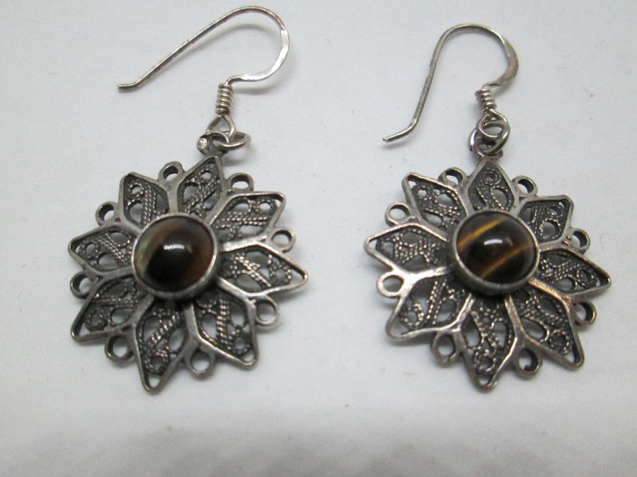 Filigree tiger eyes earrings