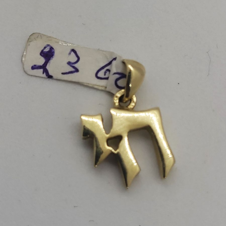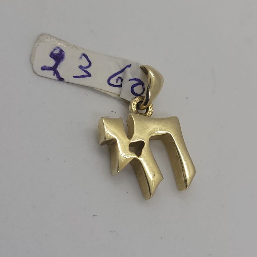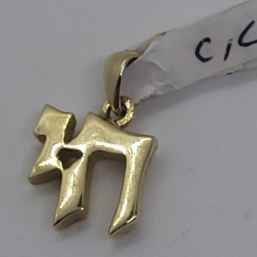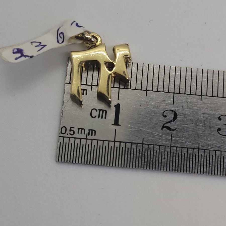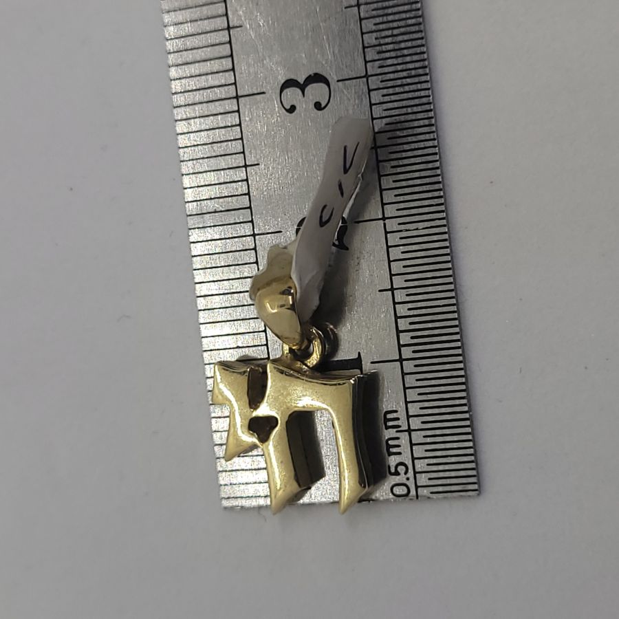 14 carat gold Chai Hay heavy small pendant. Handmade 14 carat gold Chai Hay heavy small size masculine design suitable for men and boys. Dimension 1.1 cm X 1.1 X 0.28 cm approximately.