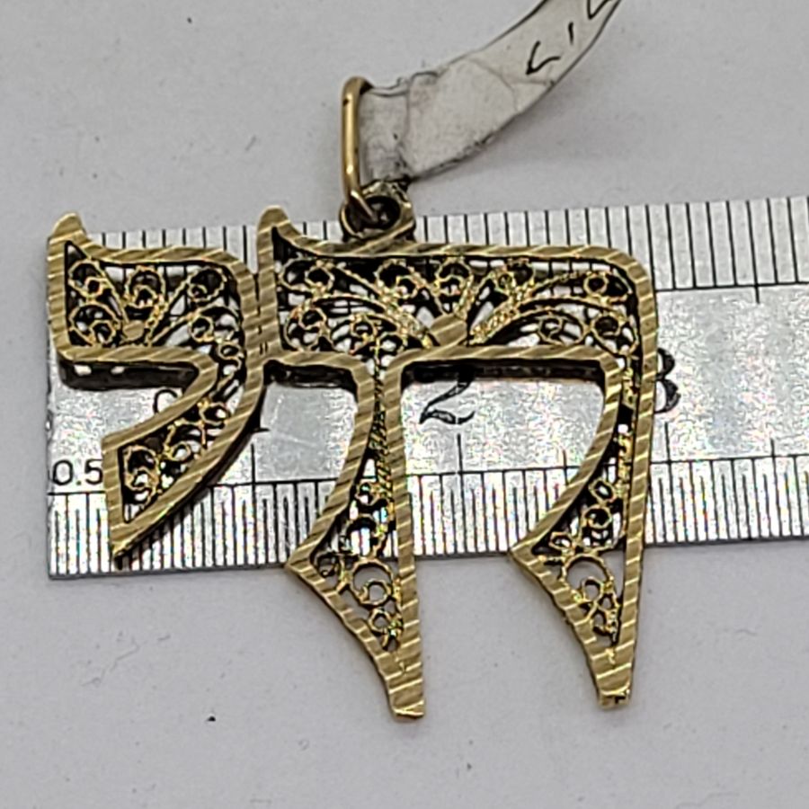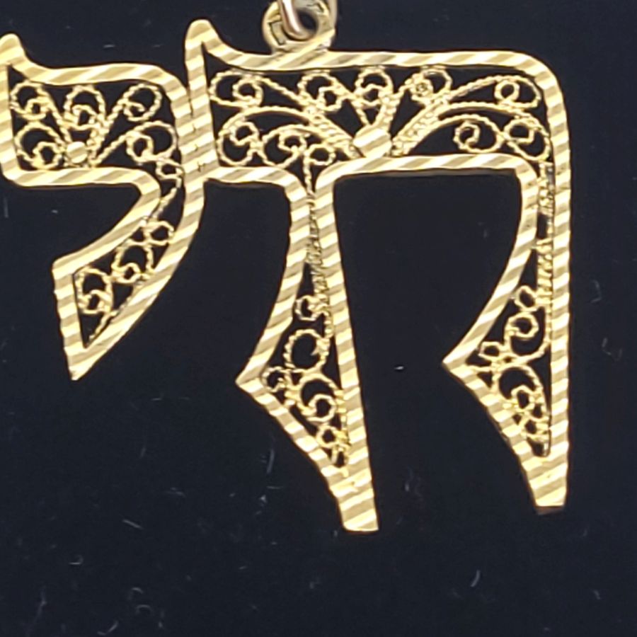 Hay or Chai literally means alive or living , but mostly meaning a wish for long life. By the Jewish religion, the world has been created with the help of Hebrew letters and words. This spiritual aspect has been repeated subsequently in the Talmud and later in the Kabbalah the Zohar.