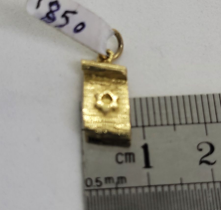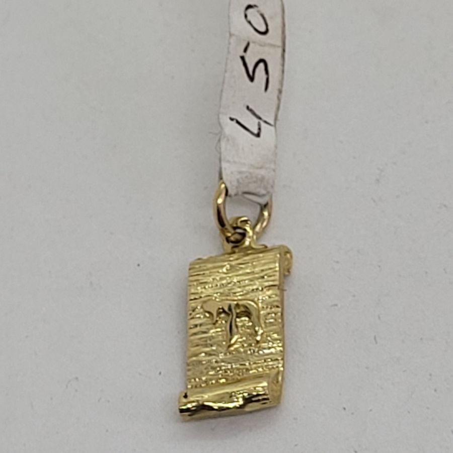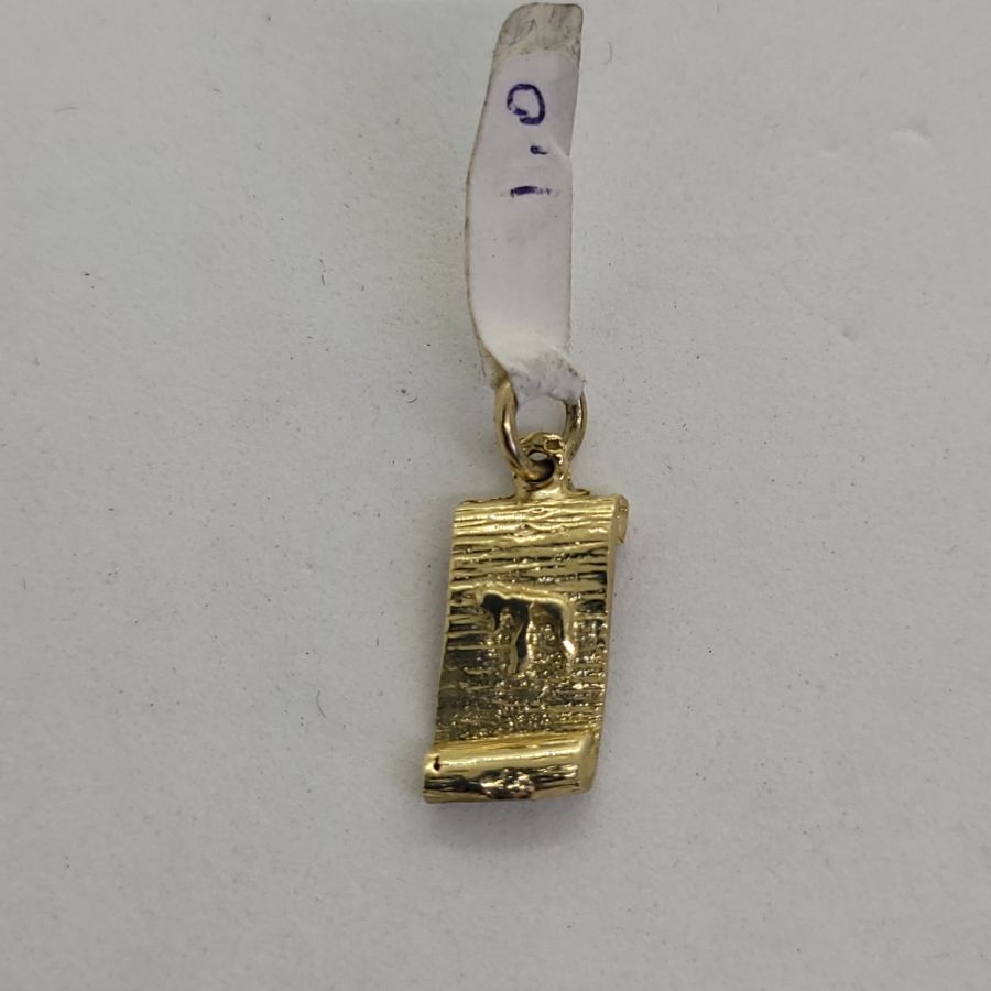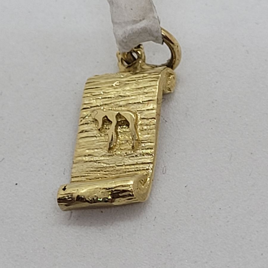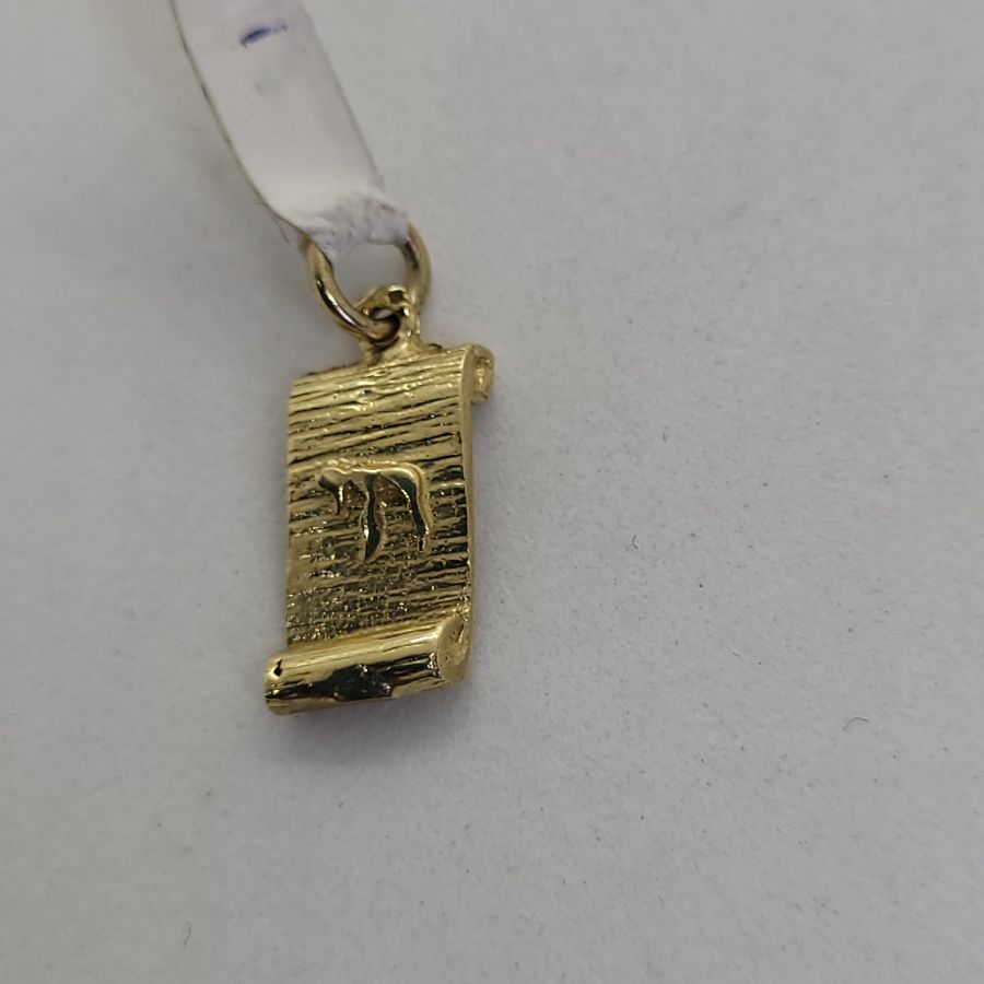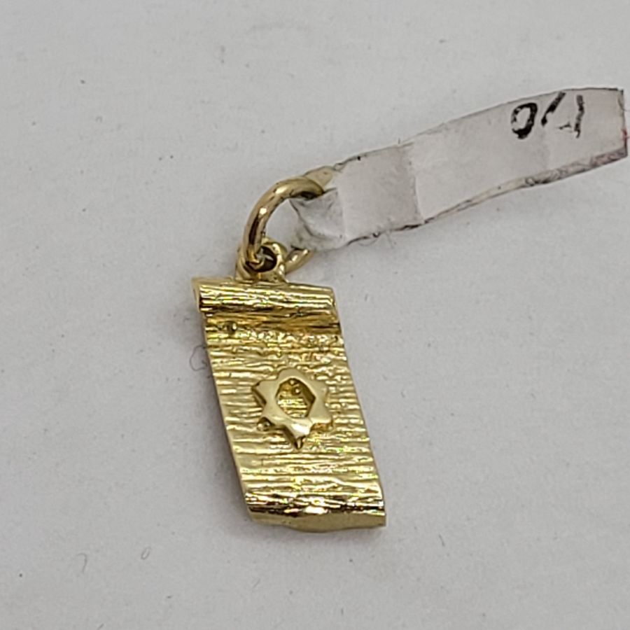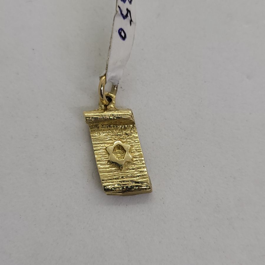 14 carat gold Hay Magen David star pendant. Handmade 14 carat gold pendant parchment shape with Hay Magen David star. Dimension 1.35 cm X 0.75 X 0.26 cm approximately.