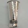 Handmade Kiddush goblet Jerusalem design. Sterling Silver Kiddush goblet Jerusalem design with hand hammered designs around & Jerusalem houses around borders. Dimension diameter 6.6 cm X 12.3 cm approximately.