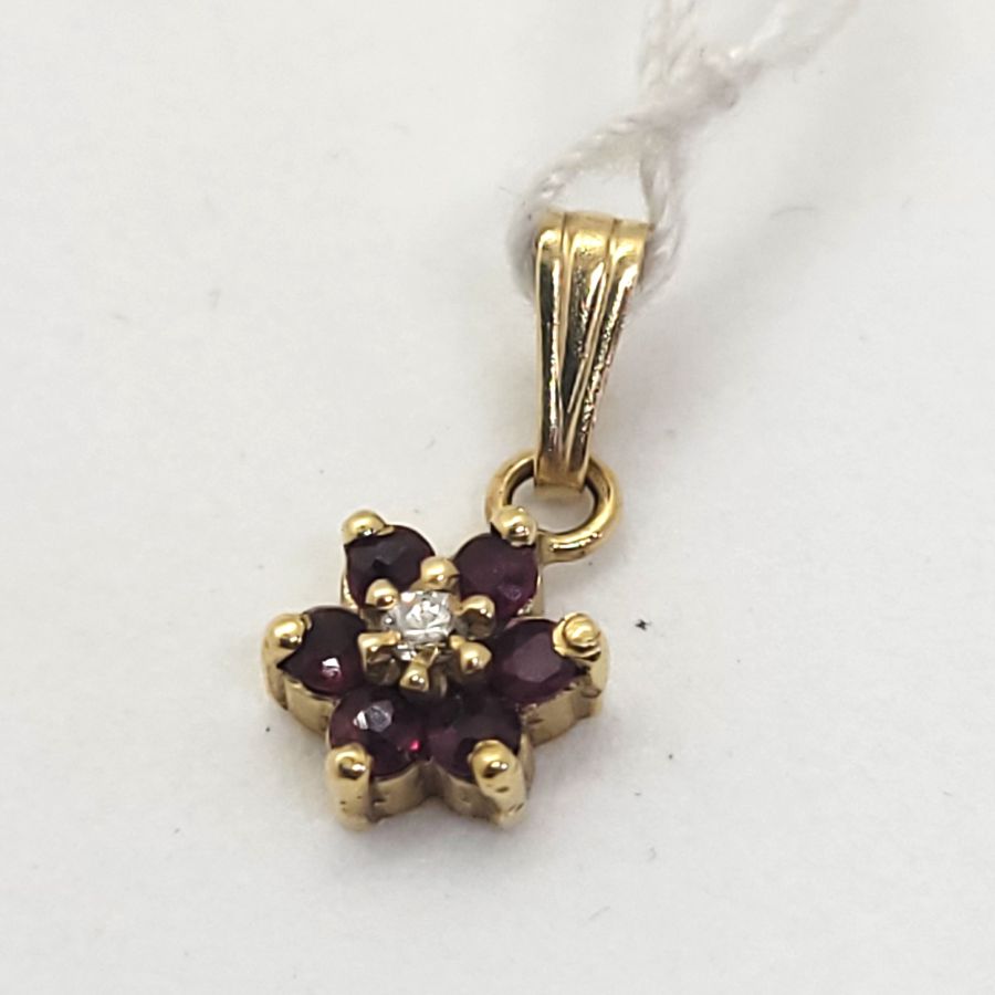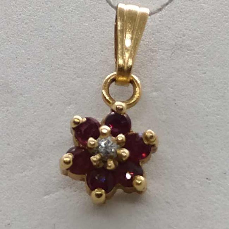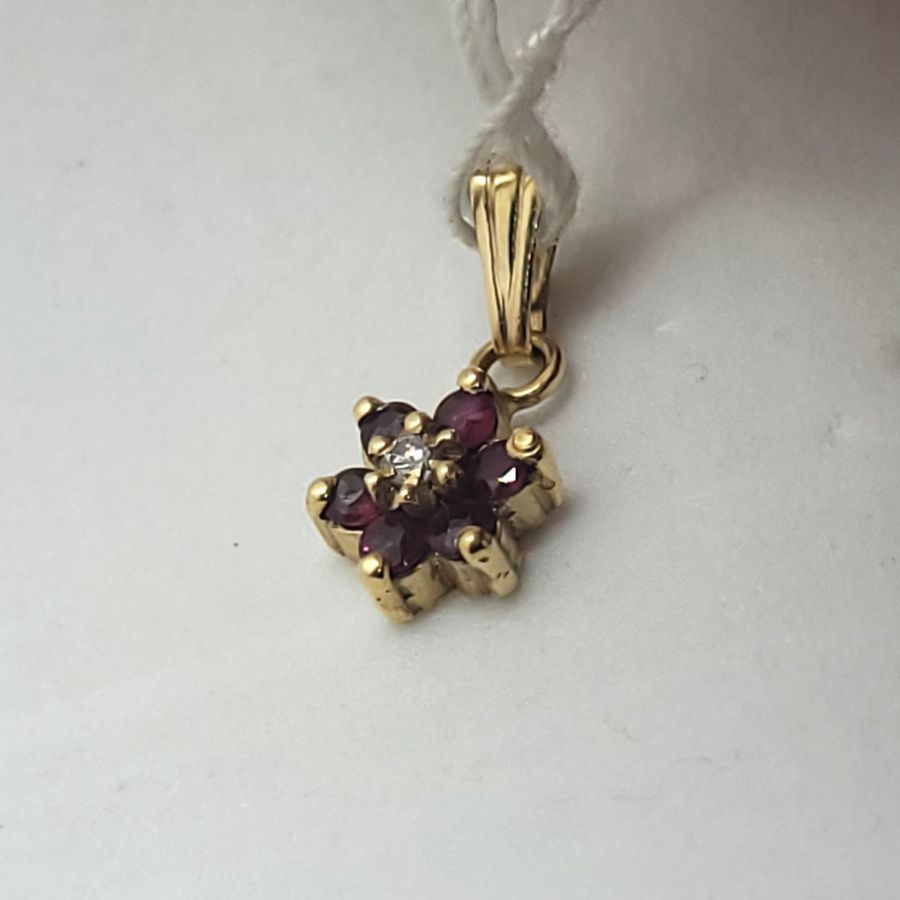 14 Carat yellow gold Magen David Diamond Rubies star pendant handmade. 14 carat yellow gold star Magen David Diamond Rubies pendant set with a genuine white diamond 4 pts & 6 rubies.