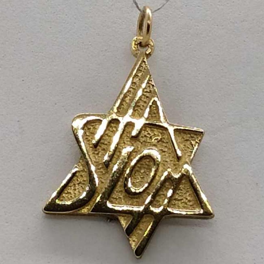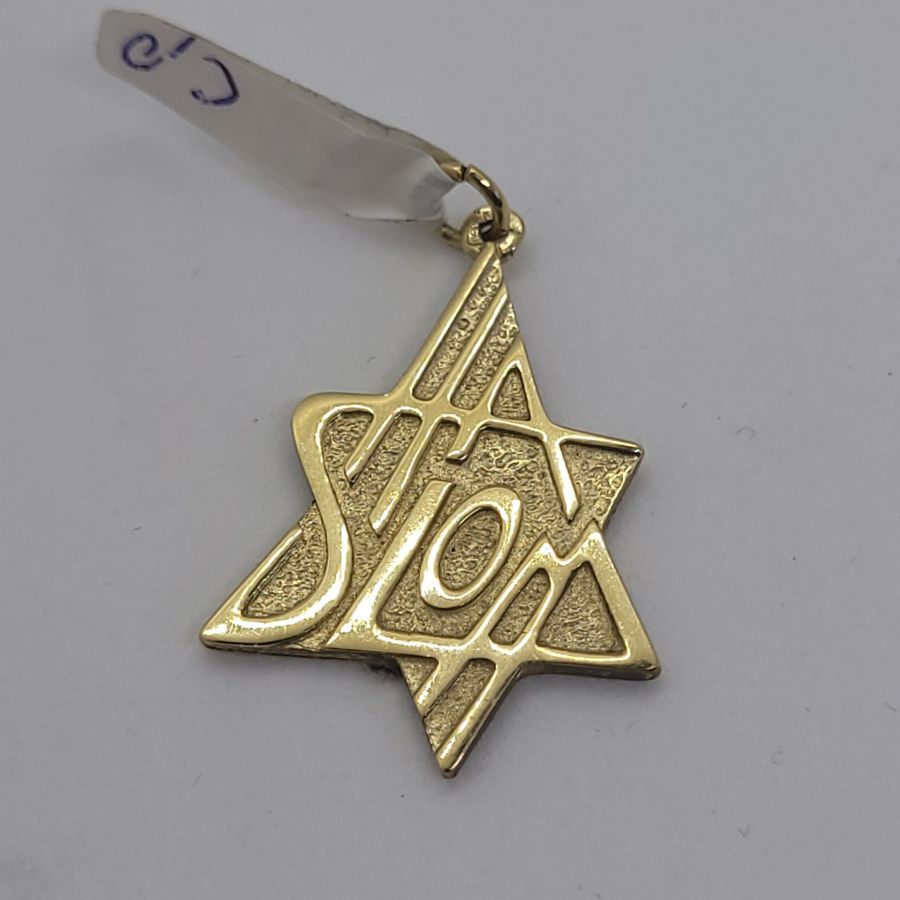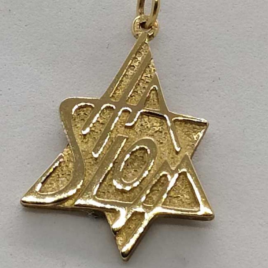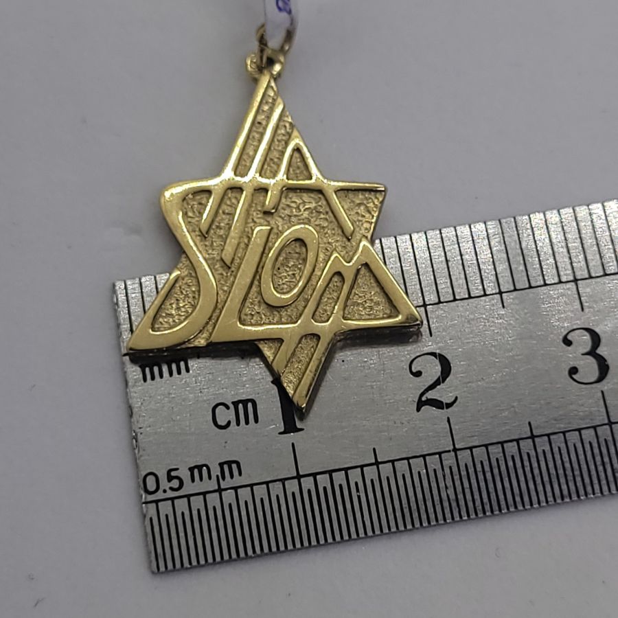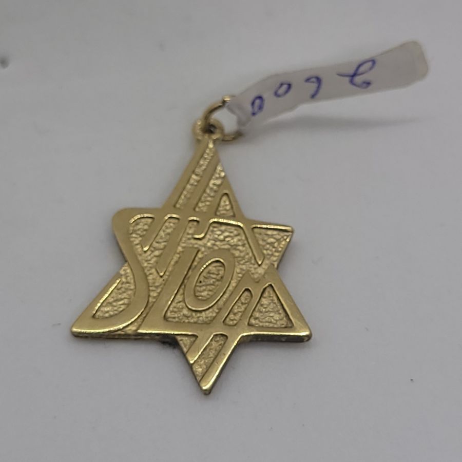 14 Carat yellow gold MagenDavid pendant Shalom English letters forming the star of David handmade. Handmade 14 carat gold MagenDavid pendant Shalom English calligraphy inside star frame.