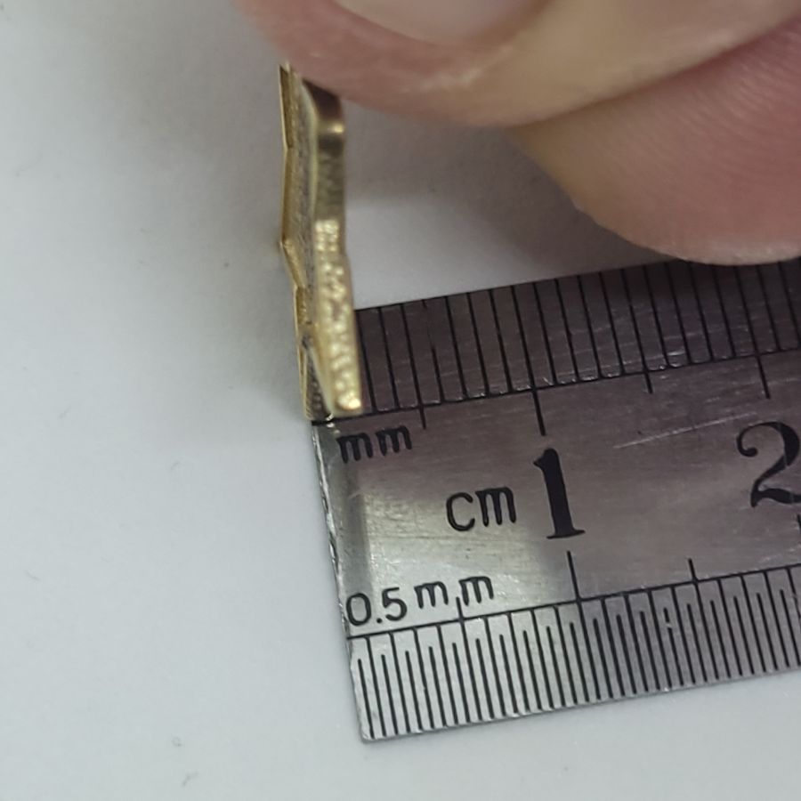 Dimension 1.9 cm X 2.9 cm X 0.15 cm approximately.