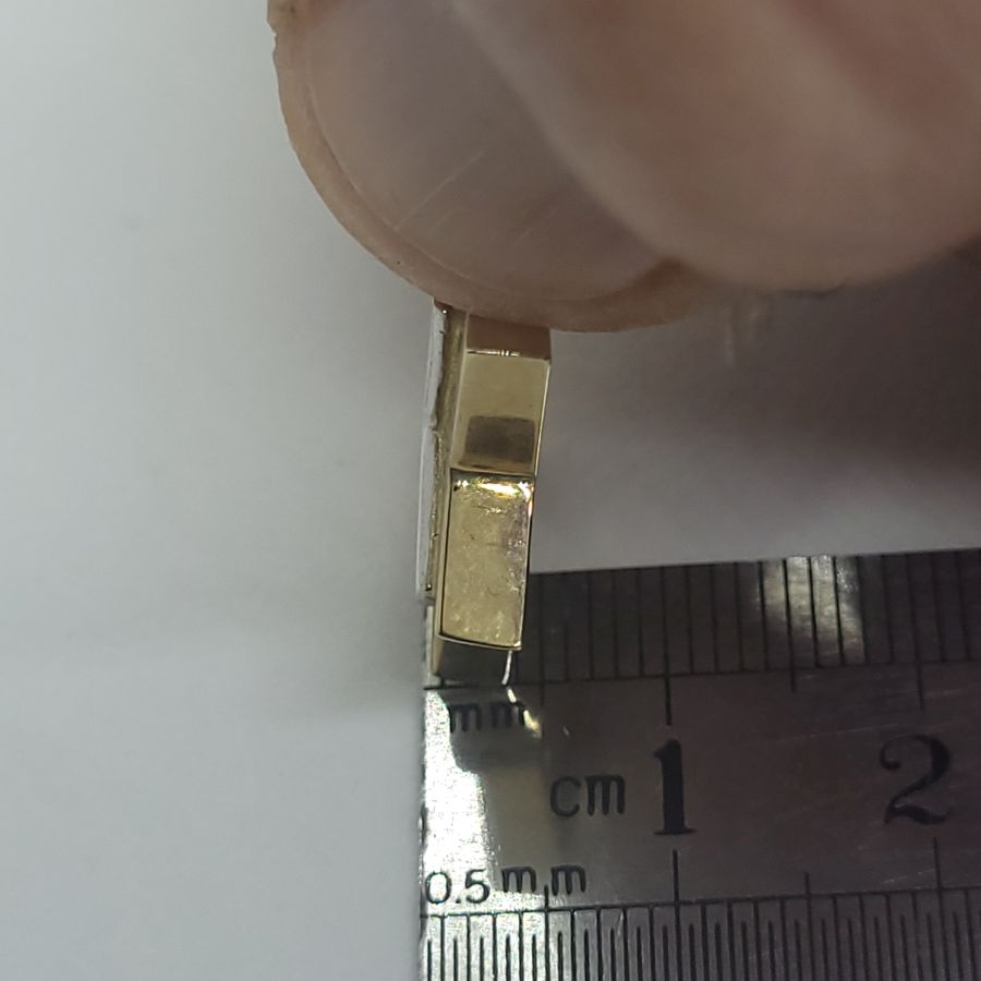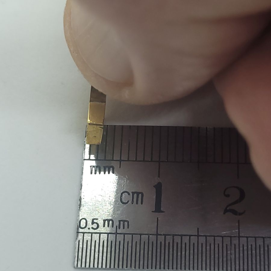 Dimension 1.9 cm X 2.7 cm X 0.4 cm approximately.