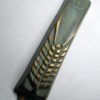 Mezuzah brass wheat leaf green patina with wheat leaf design suitable for parchment up to 11 cm. Dimension 3.4 X 16.3 cm approximately.