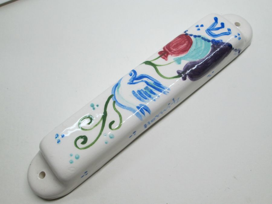 Mezuzah Ceramic Dove Balloons handmade. Mezuzah Ceramic Dove Balloons made by Horwitz with dove & balloons. Suitable for parchment up to 10 cm length.