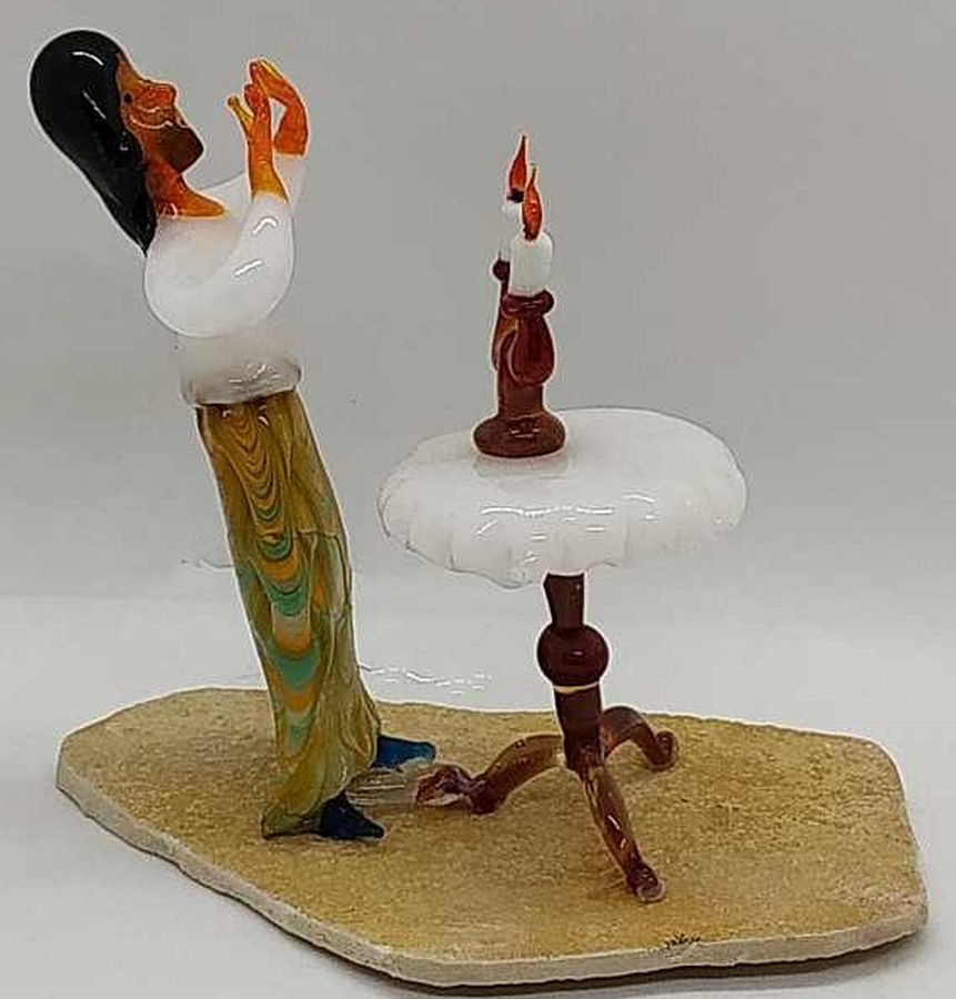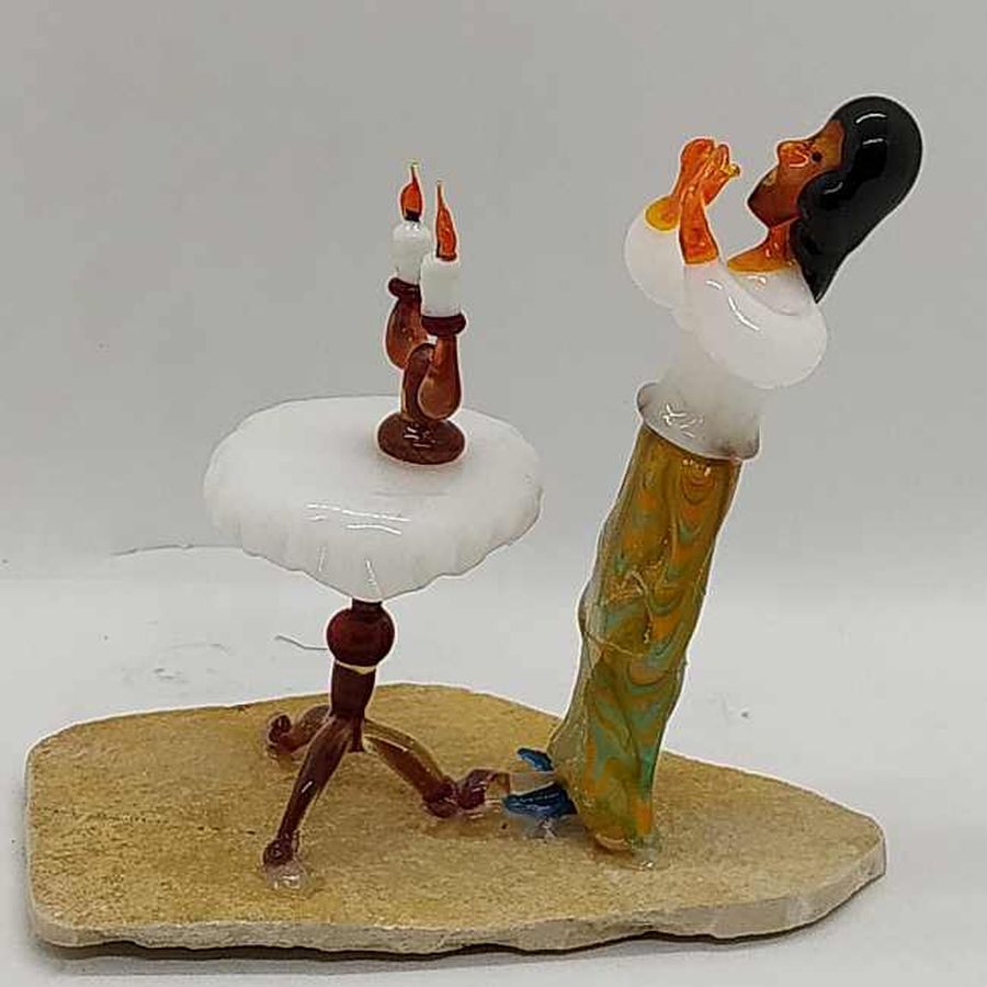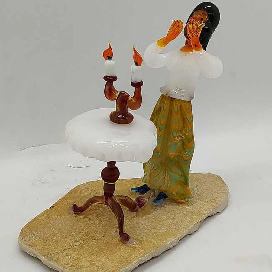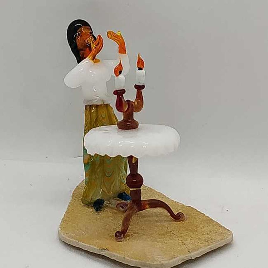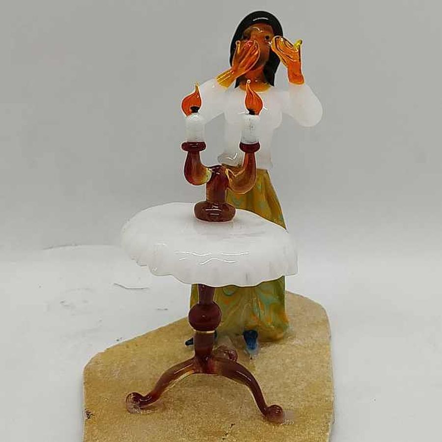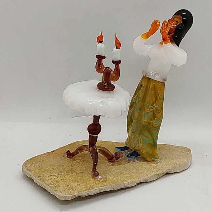 Mouth Blown Glass Sculpture . Handmade and mouth blown glass sculpture by Borisov. A Jewish housewife lighting the Sabbath candles.