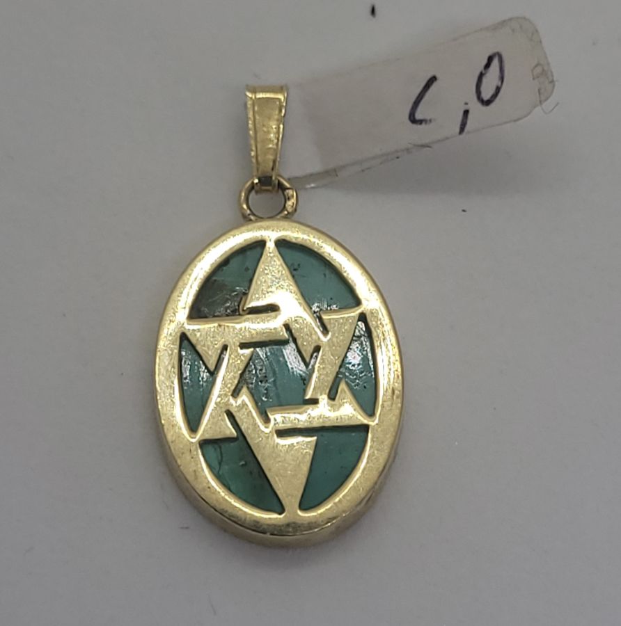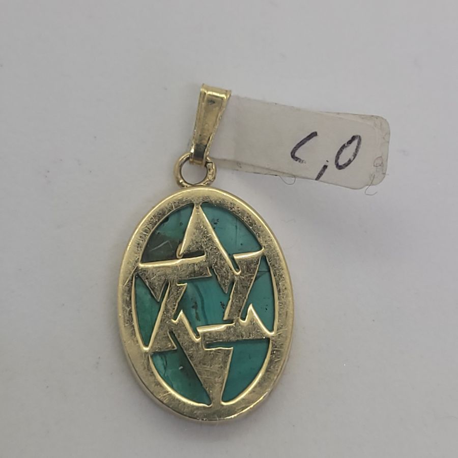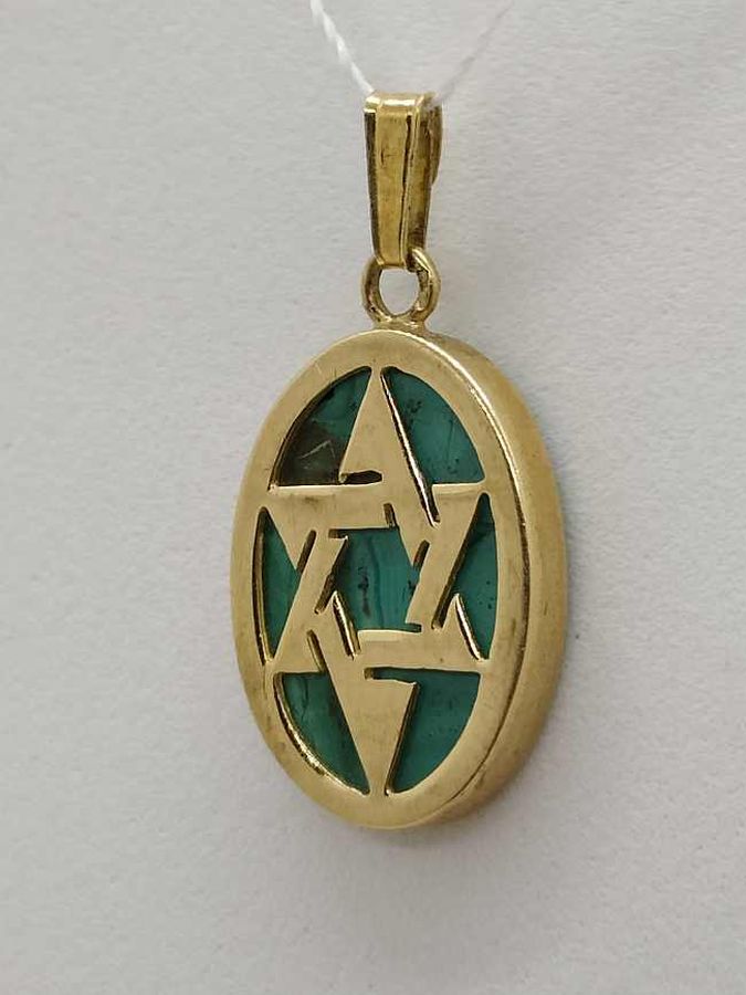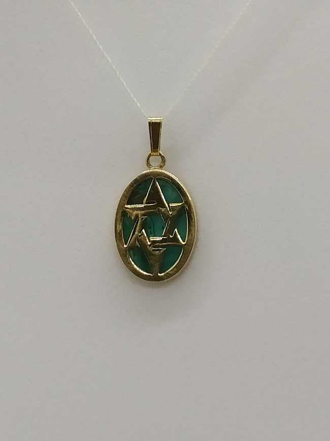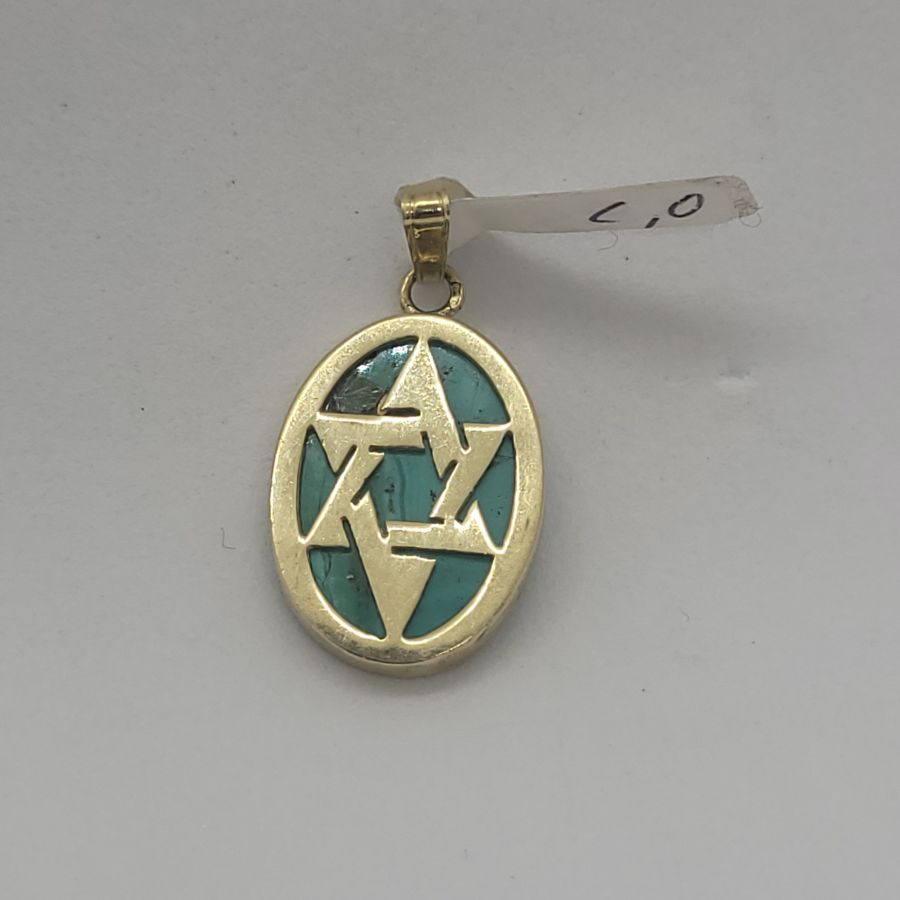 14 Carat gold Magen David star pendant Elat stone oval shape handmade. Contemporary 14 carat Yellow gold pendant Elat stone oval star of David set with Elat stone.