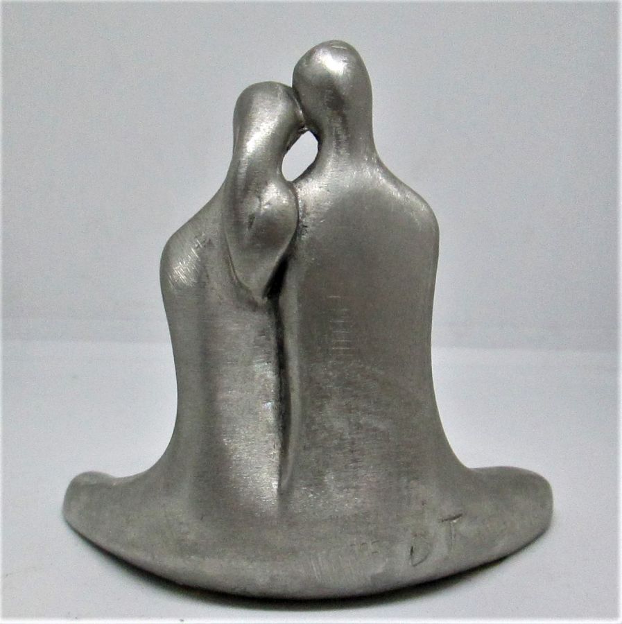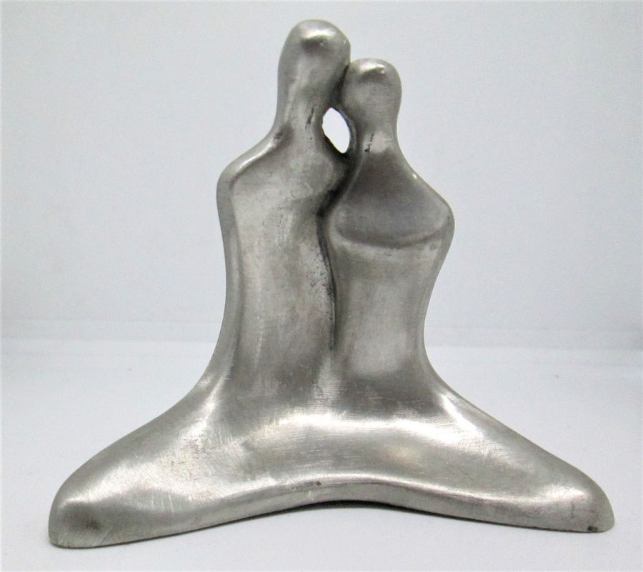 Pewter Sculpture Yoga Couple handmade with real pewter modern sculpture by D.Jaron. A couple practicing Yoga together. Jaron has made this sculpture in many repetitions and not numbered as many artists do for living. The big versions of her designs and one of a kind, are only made in bronze.