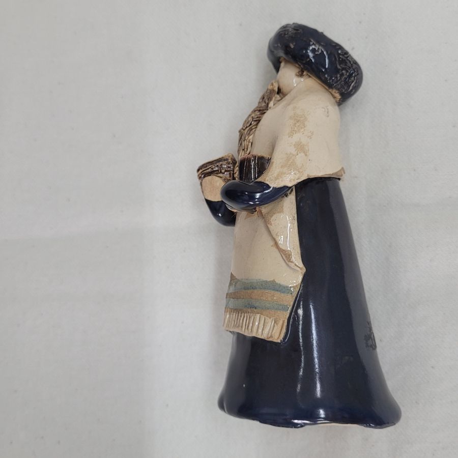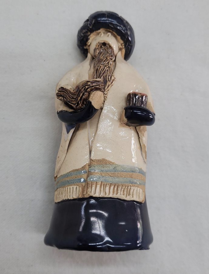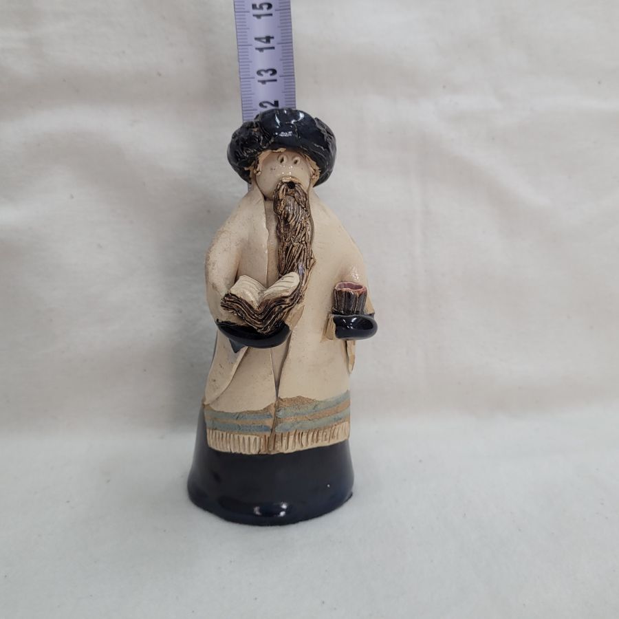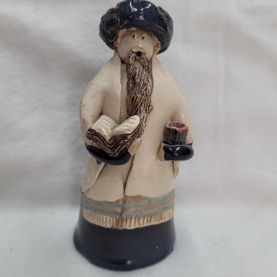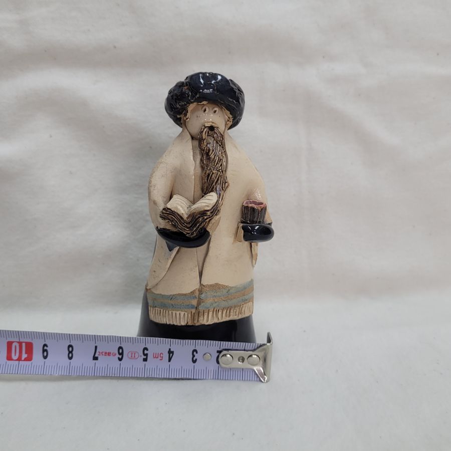 Rabbi Praying Wine Blessings statue. Handmade glazed ceramic sculpture of a Chasid Rabbi Praying Wine Blessings wearing prayer shawls & holding the prayer book made by Y.Dar. Dimension 4.8 cm X 12 cm X 5.9 cm approximately.