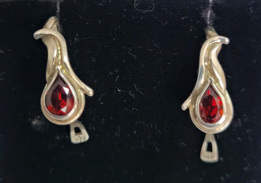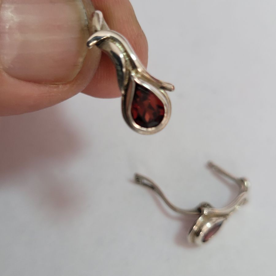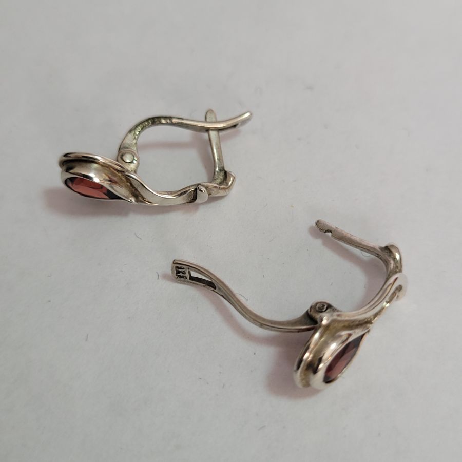 Silver abstract Garnet earrings