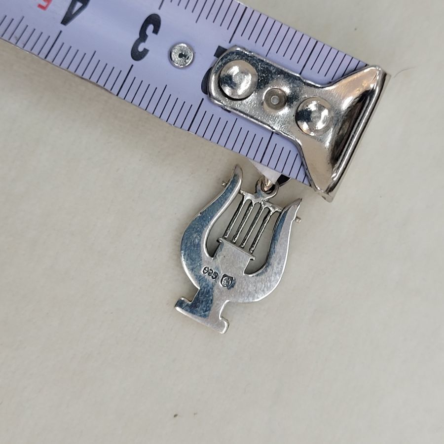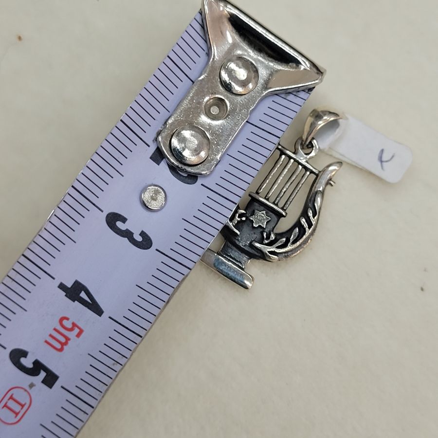 Handmade sterling silver David harp pendant. In silver David harp pendant, there is a small Magen David star in center of harp.