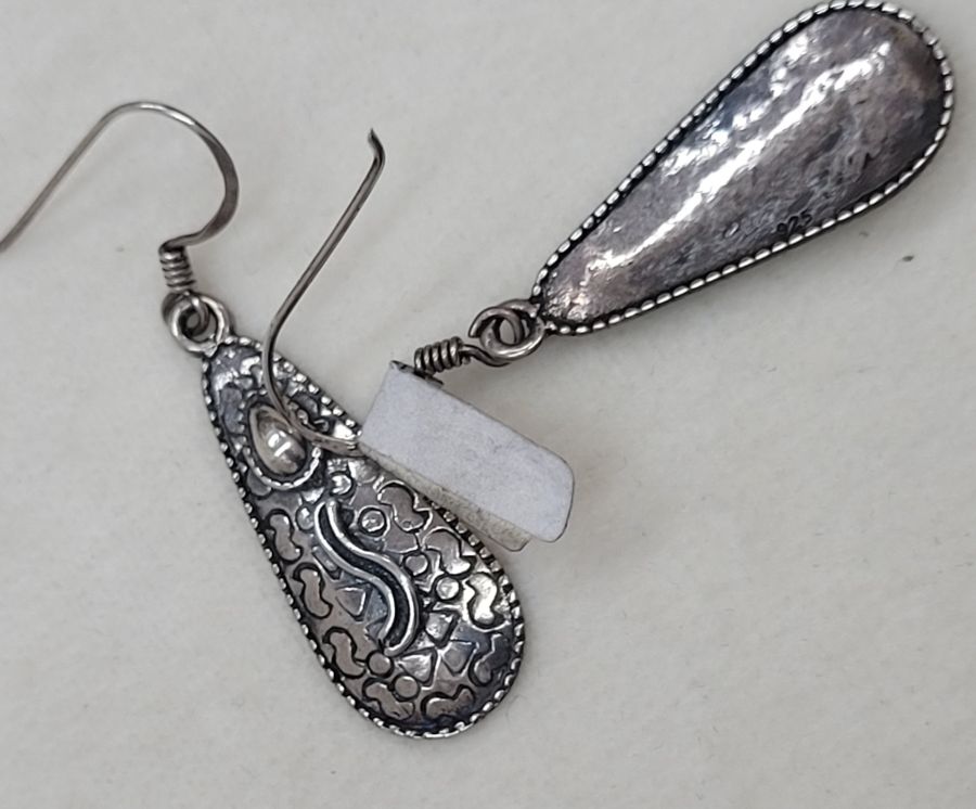 Handmade sterling silver earrings contemporary style. The hook in sterling silver earrings contemporary style can be changed to screw finding for non pierced ears by request. Dimension 1.2 cm X 3 cm approximately.