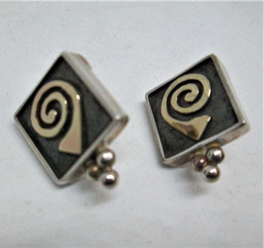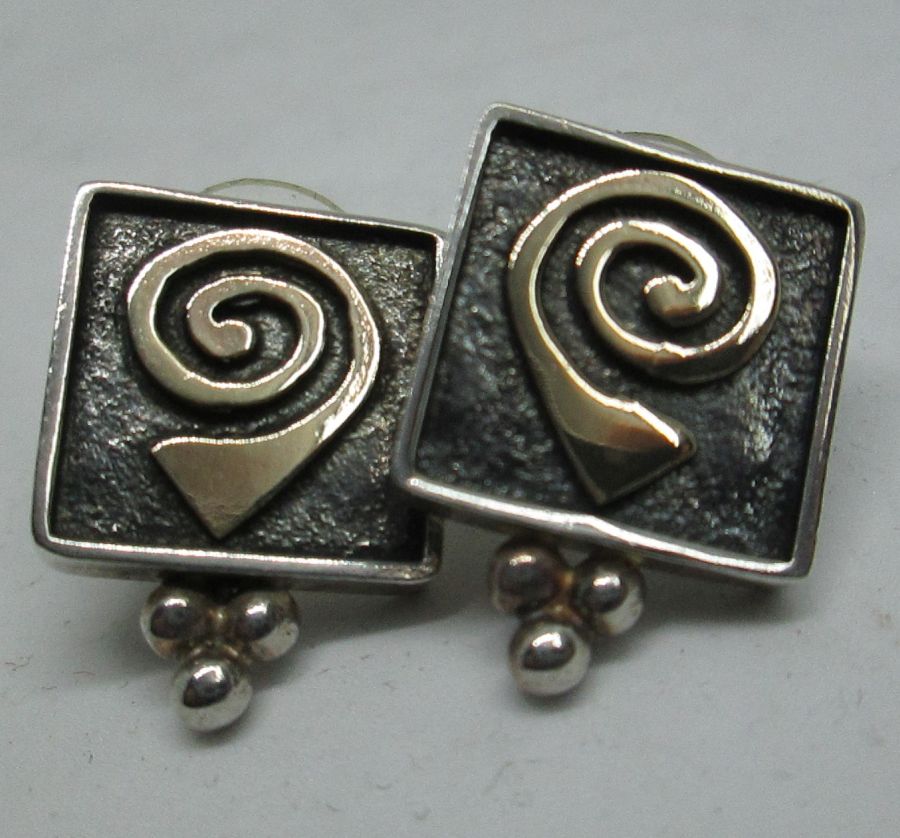 Handmade sterling silver earrings gold snail 14 carat gold design on sterling silver. Sterling silver earrings gold snail 14 carat gold design, can not be altered to non pierced ear lobes.  Dimension 1.6 cm X 2.2 cm approximately.