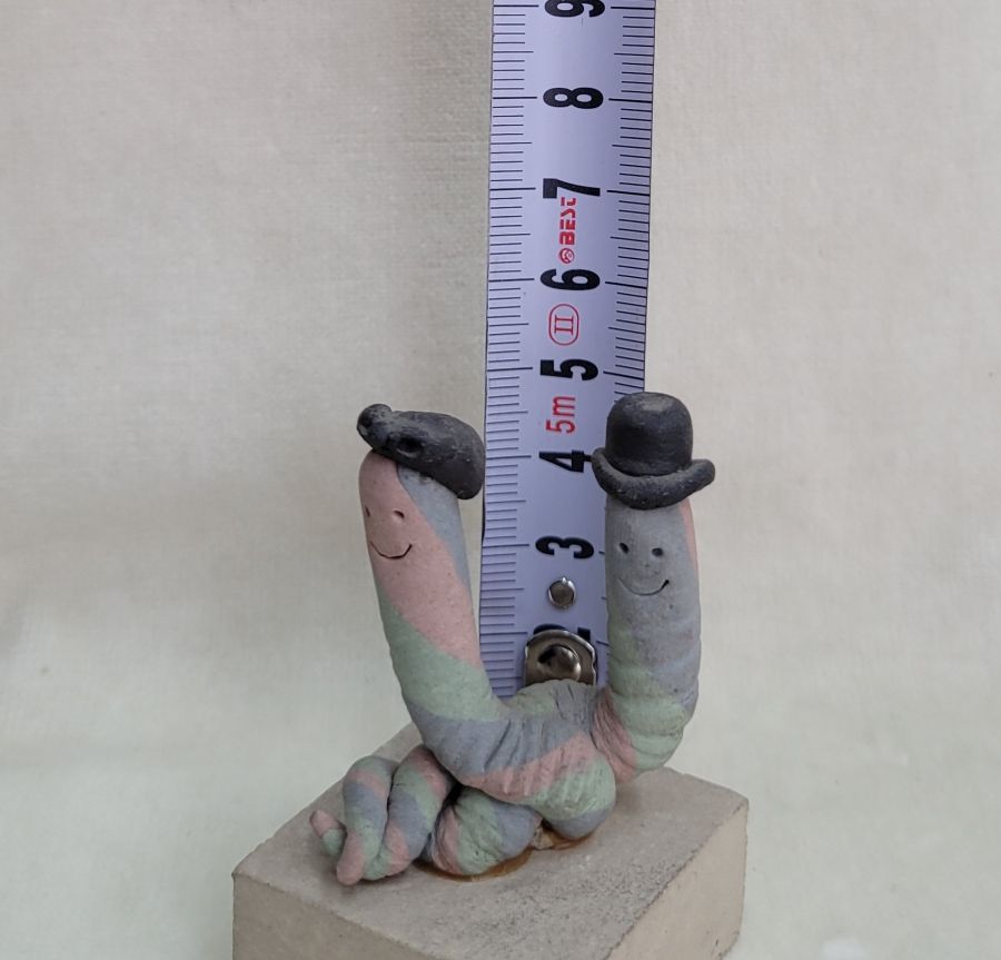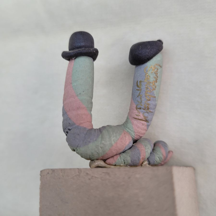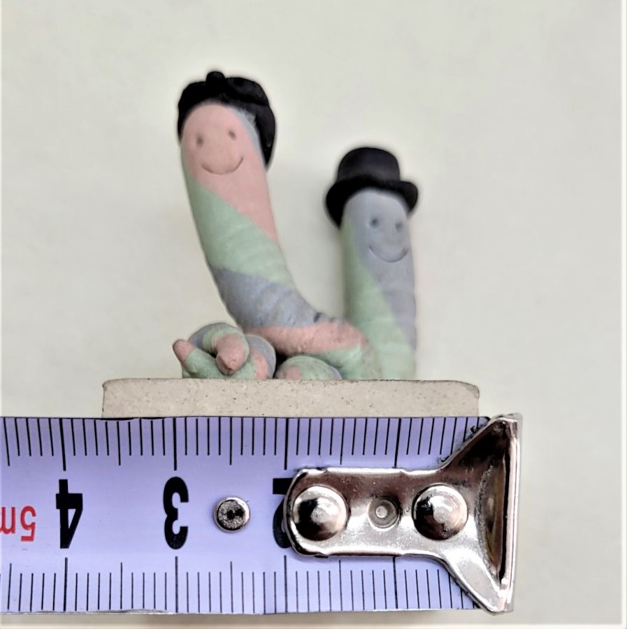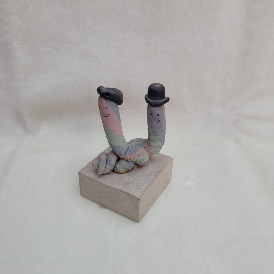 Smiley worms ceramic sculpture handmade. Handmade two smiley worms ceramic sculpture made in 1980’s by Sakolovsky . There are more various characters in stock of Sakolovsky creations. Dimension 5 cm X 3.5 cm X 4 cm approximately.