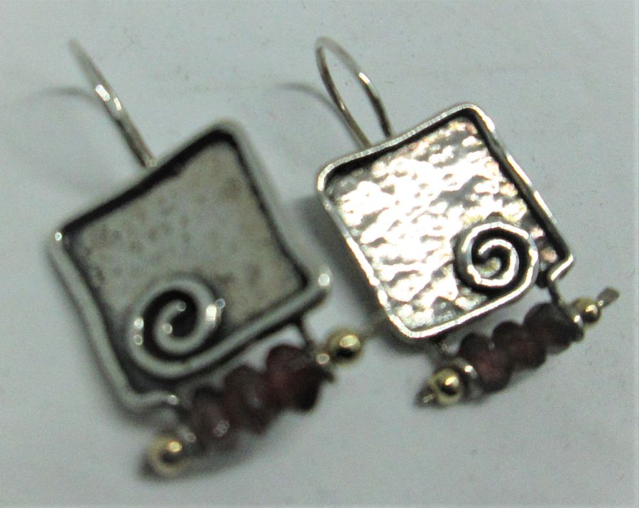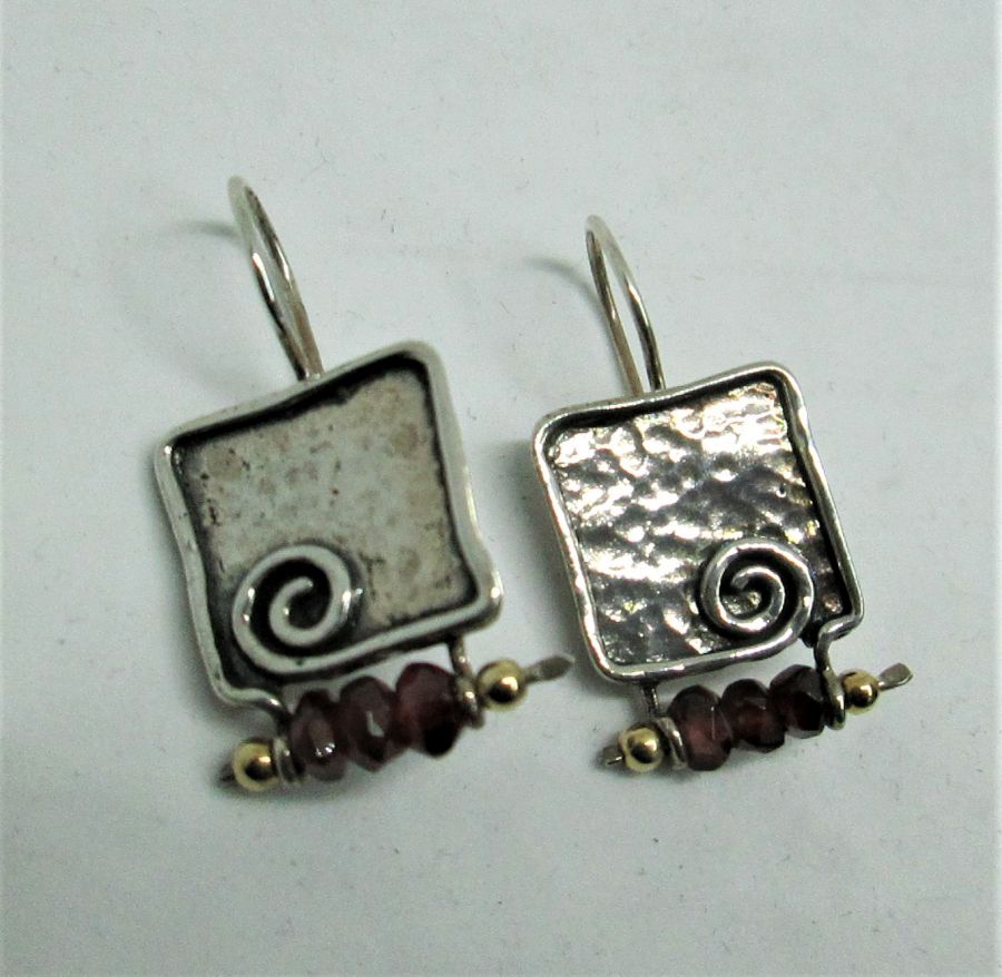 Handmade sterling silver earrings Garnets set with 3 faceted Garnets & 2 gold beads. The hook in sterling silver earrings Garnets can not be changed to screw finding for non pierced ears. Dimension 1.5 cm X 1.9 cm approximately.