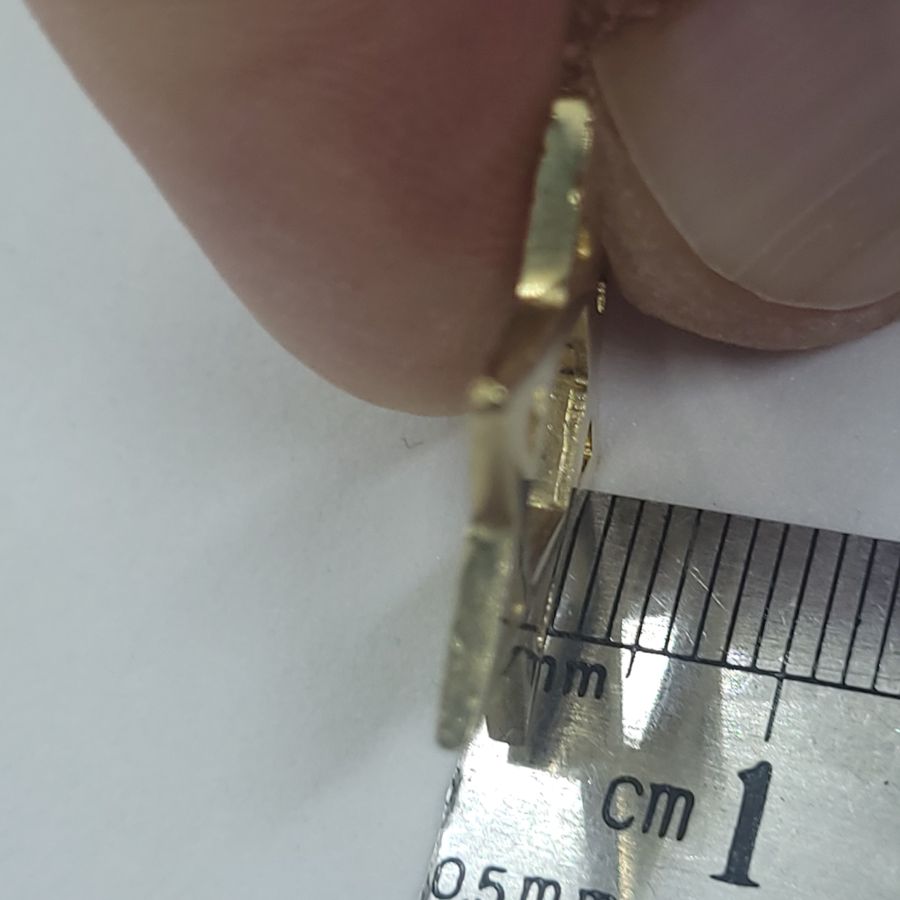 Dimension 1.6 cm X 1.9 cm X 0.2 cm approximately.