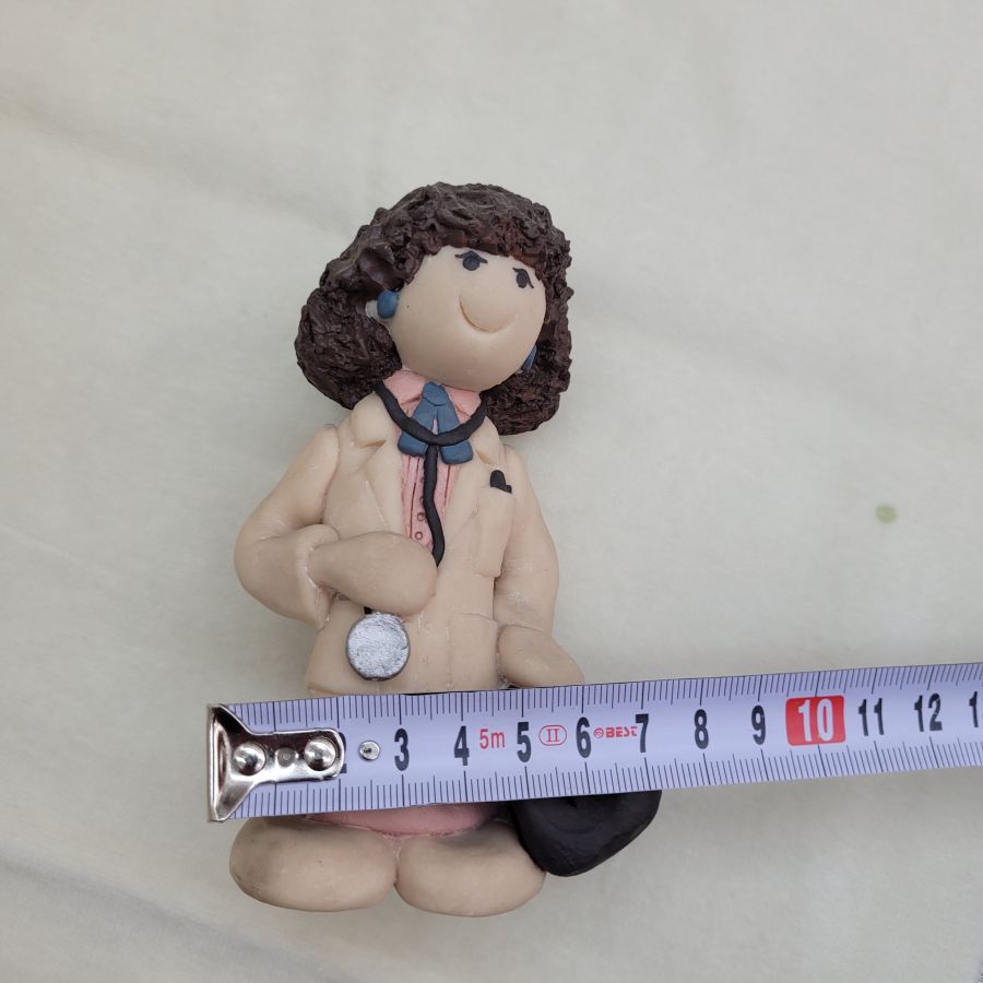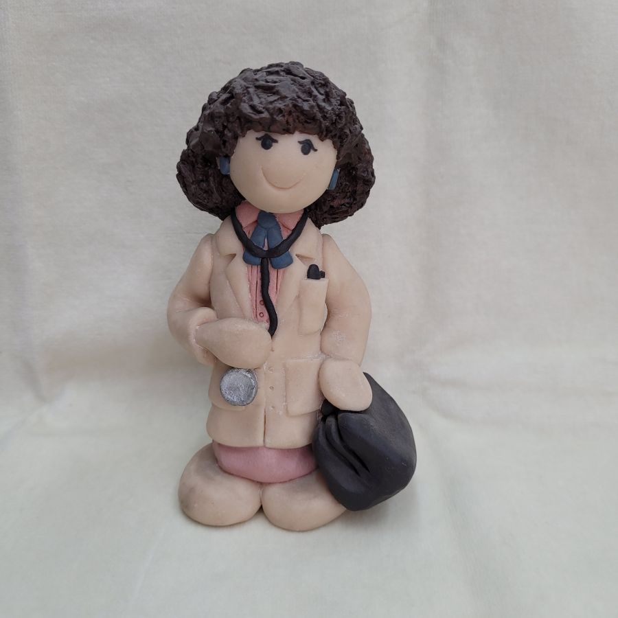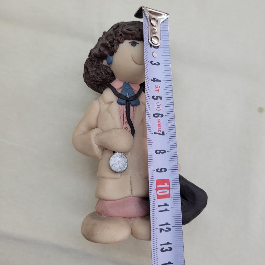Woman doctor ceramic sculpture poodle dog and boy handmade. Handmade woman doctor ceramic sculpture made in 1980’s by Sakolovsky . There are more various characters in stock of her creations. Dimension 12.5 cm X 6 cm X 7.3 cm approximately.