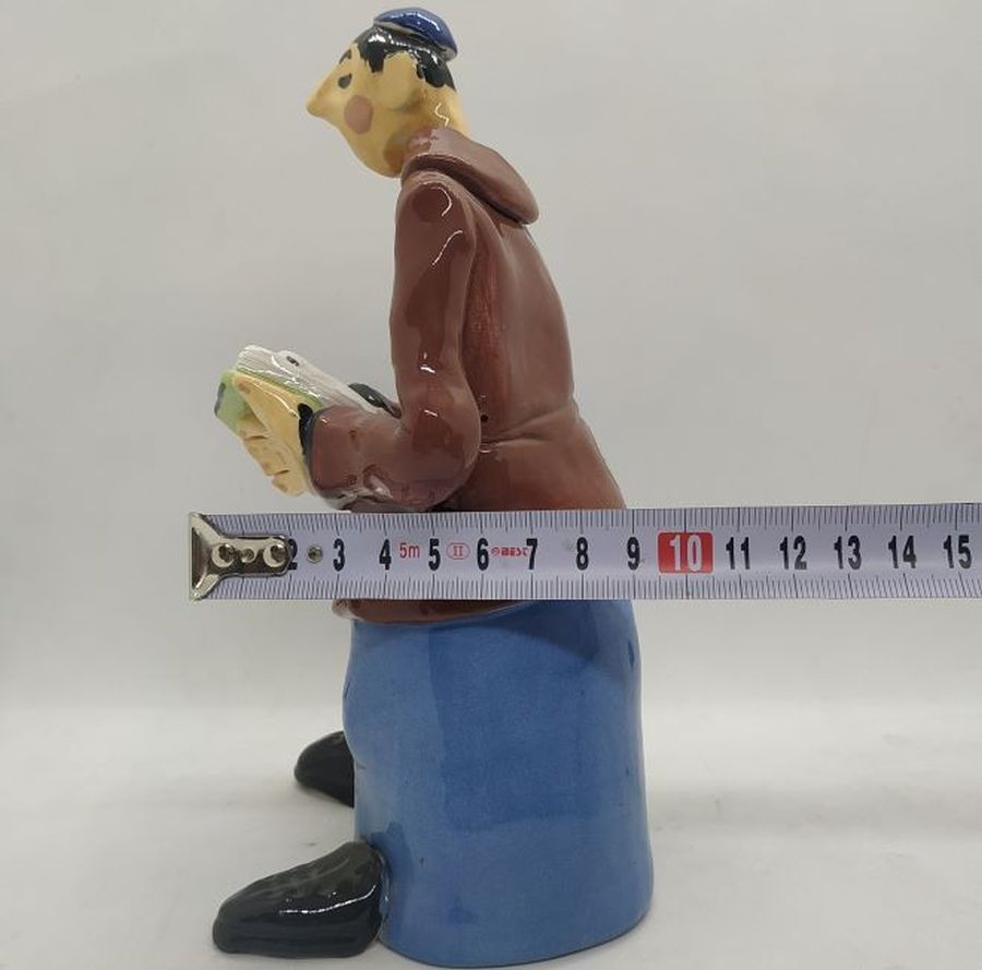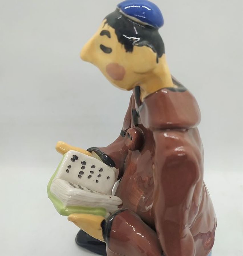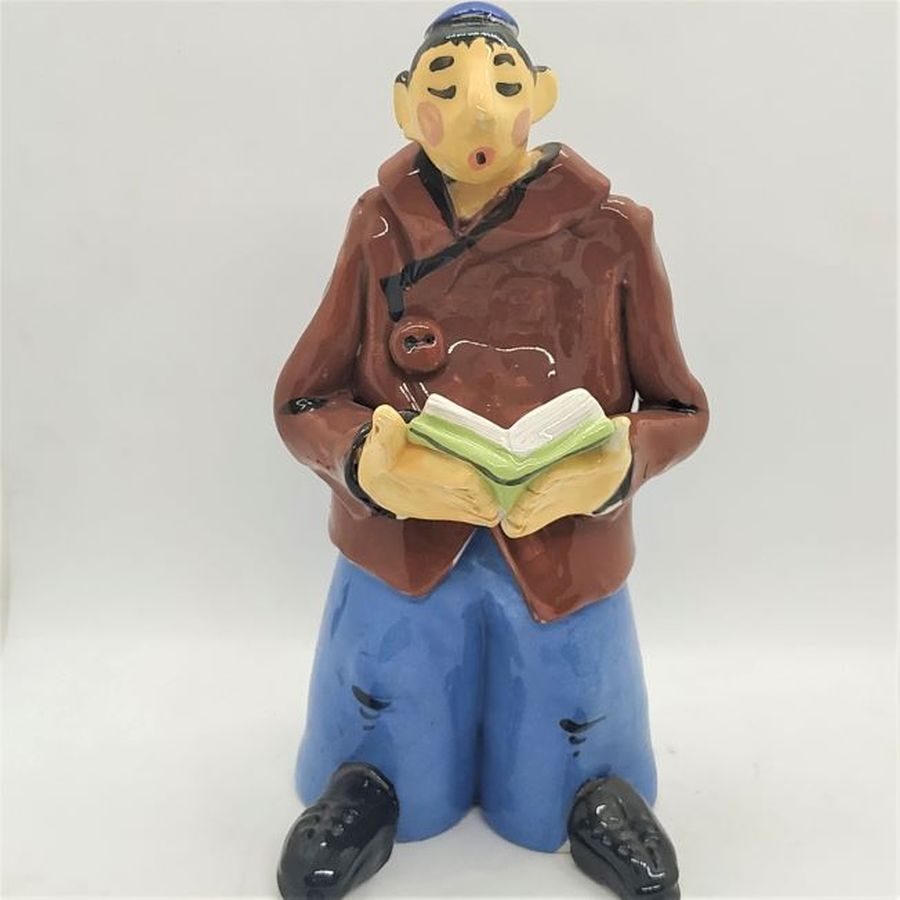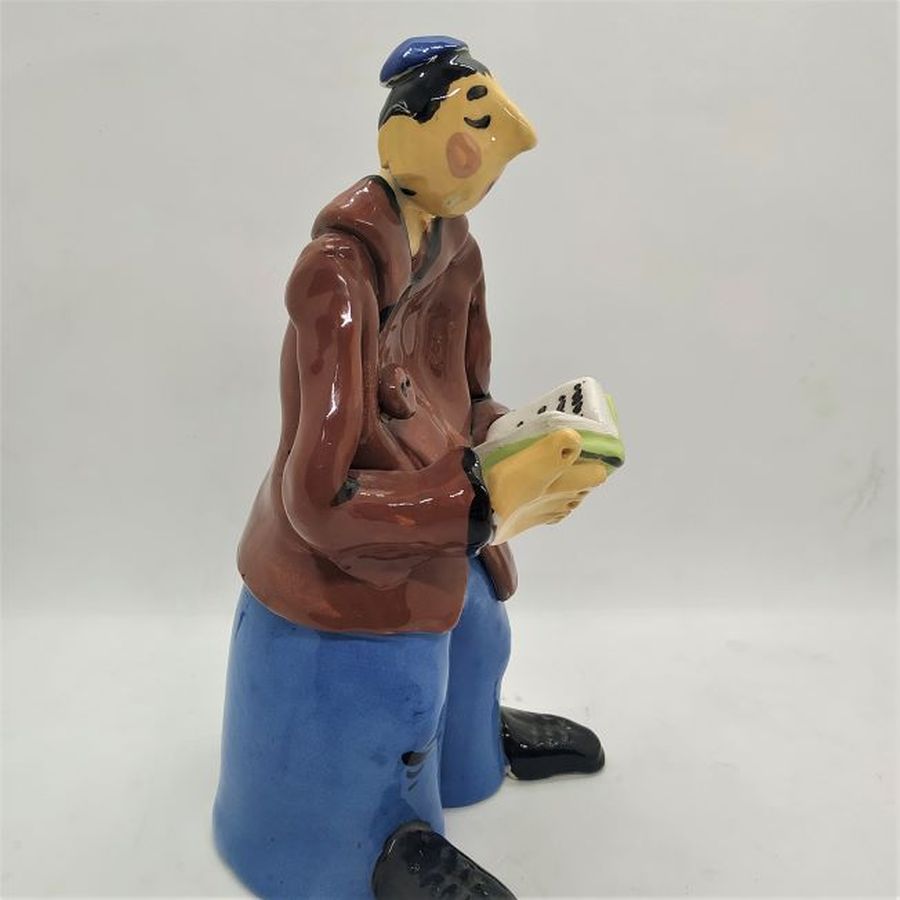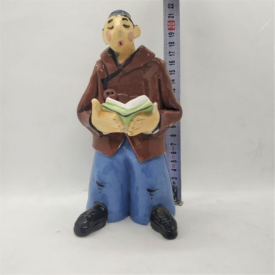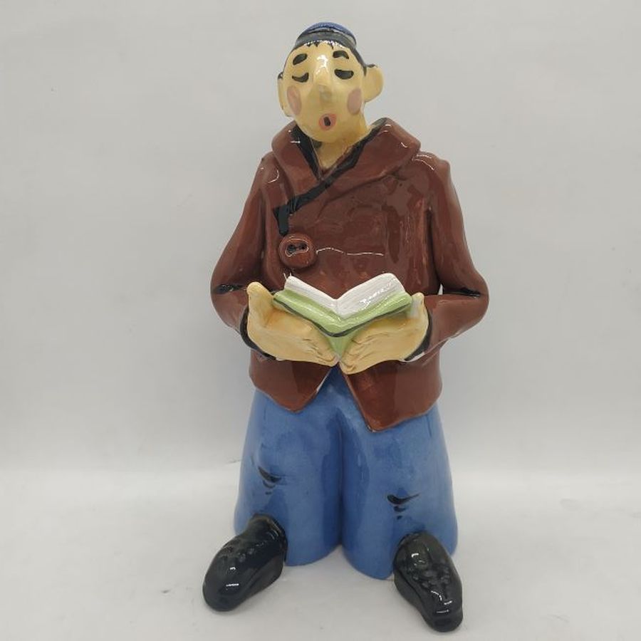 Yeshiva Boy Ceramic Sculpture handmade. Handmade glazed ceramic Yeshiva Boy Ceramic Sculpture reciting his daily prayers made by Ulshansky. Dimension 22 cm X9.5 cm X 9 cm approximately.